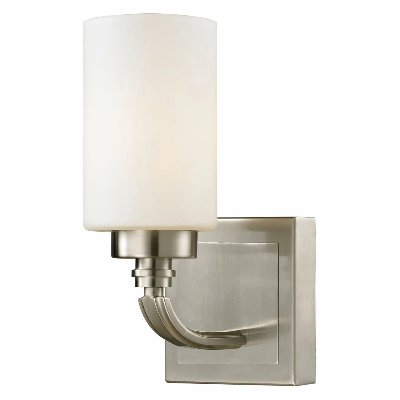 The classic design of the ELK Lighting Dawson 1 Light Bathroom Vanity Light adds beauty to your bathroom. A streamlined metal housing and white cylindrical glass shade provide a chic look. This vanity light is offered in your choice of available finishes, and it requires one bulb. The bulb comes included with the LED option. Bulb sold separately in other options.