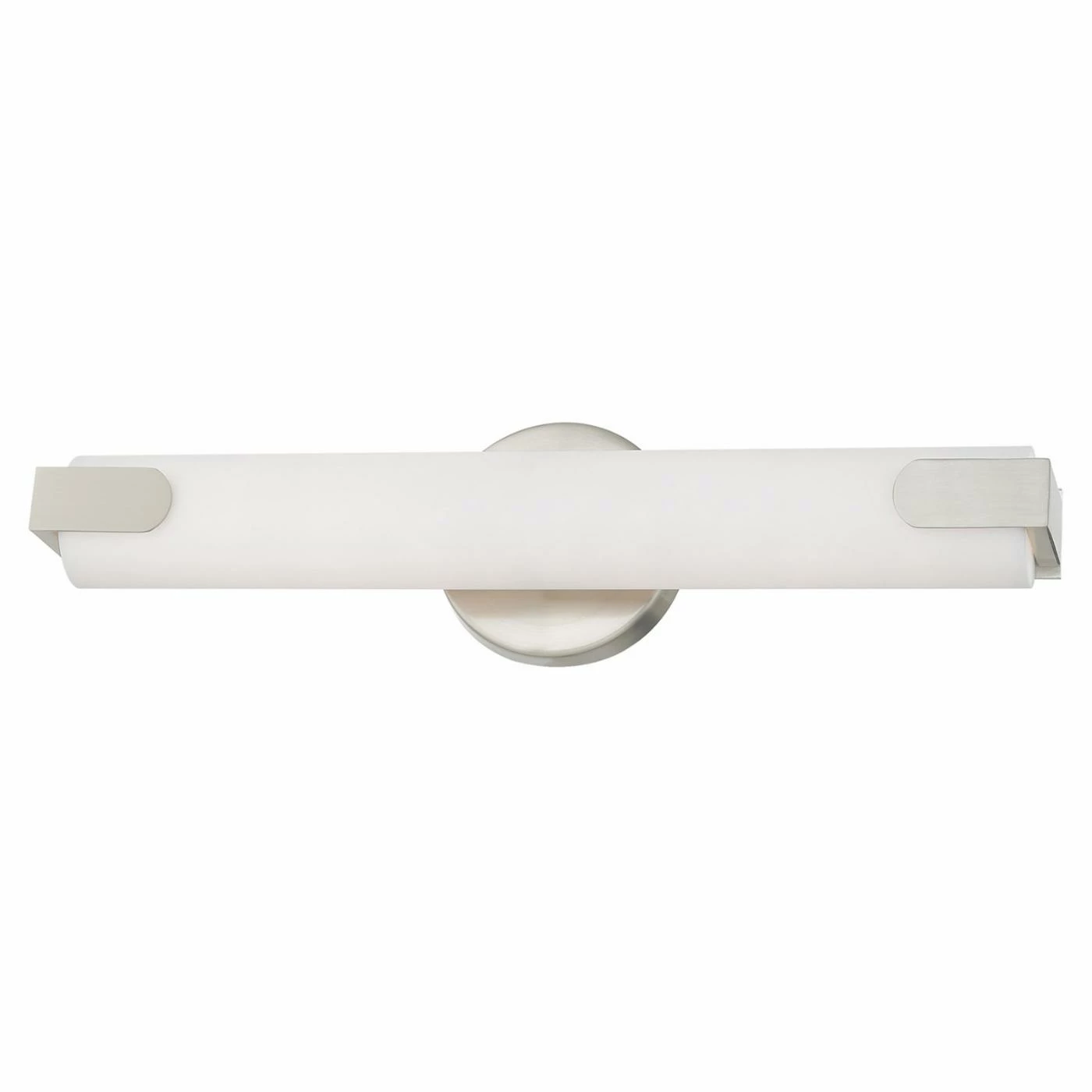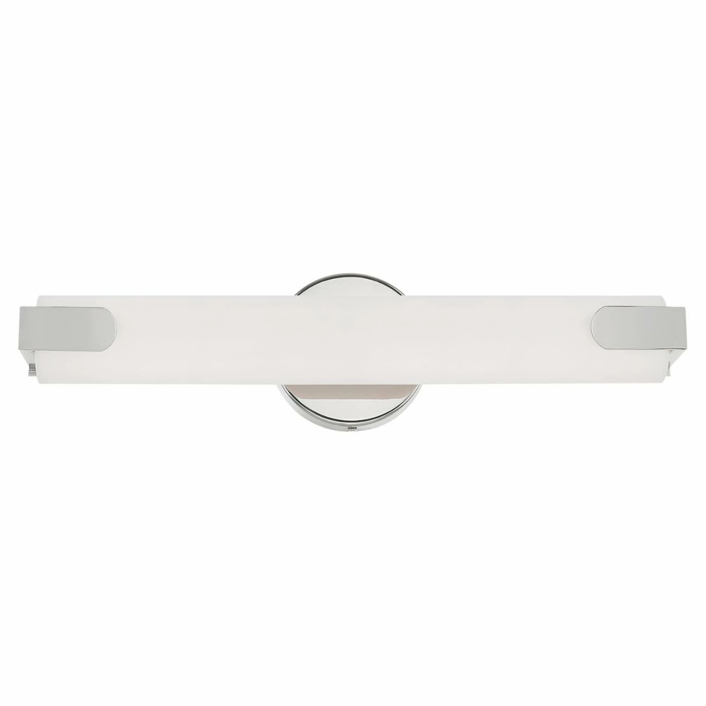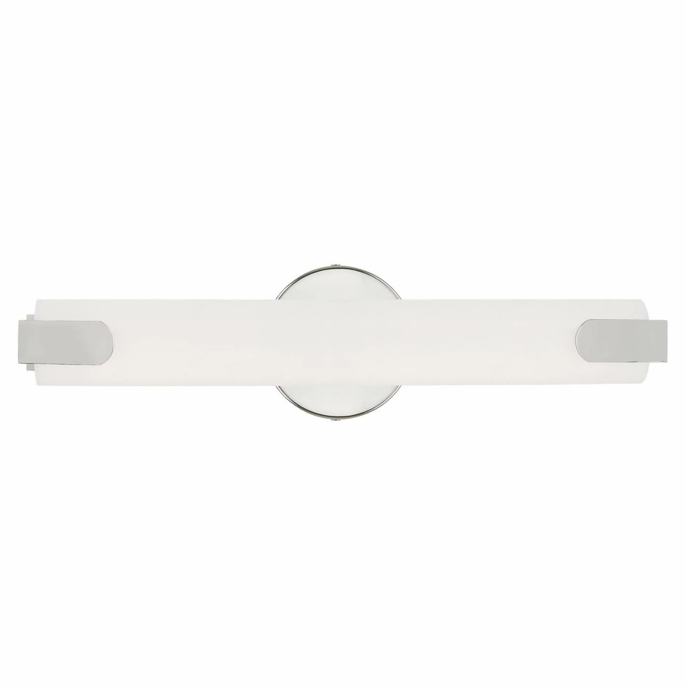 Add a streamlined look to your bathroom with the Livex Lighting Lund 16362 LED Bathroom Vanity Light. The vanity light reduces energy consumption with its dimmable LED lamp, so you can adjust the brightness of the illumination. A white acrylic shade eliminates glare. It can be installed vertically or horizontally.