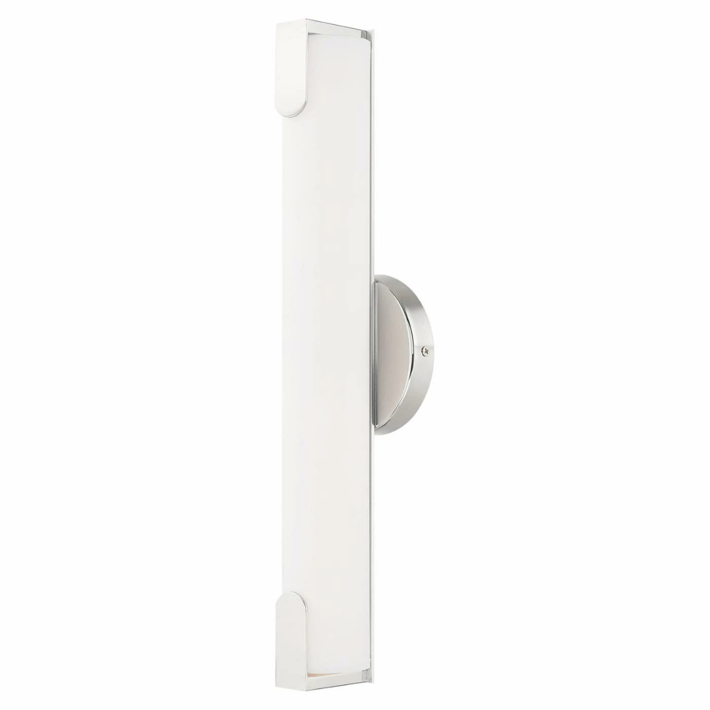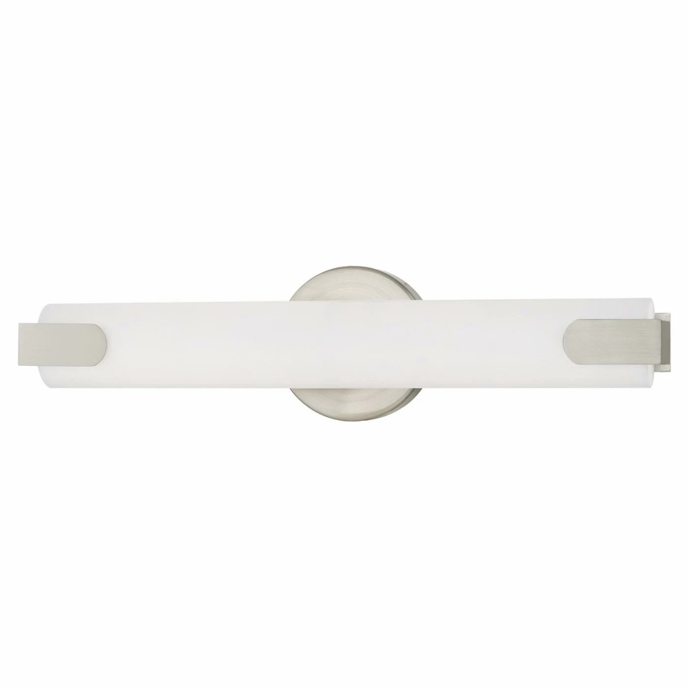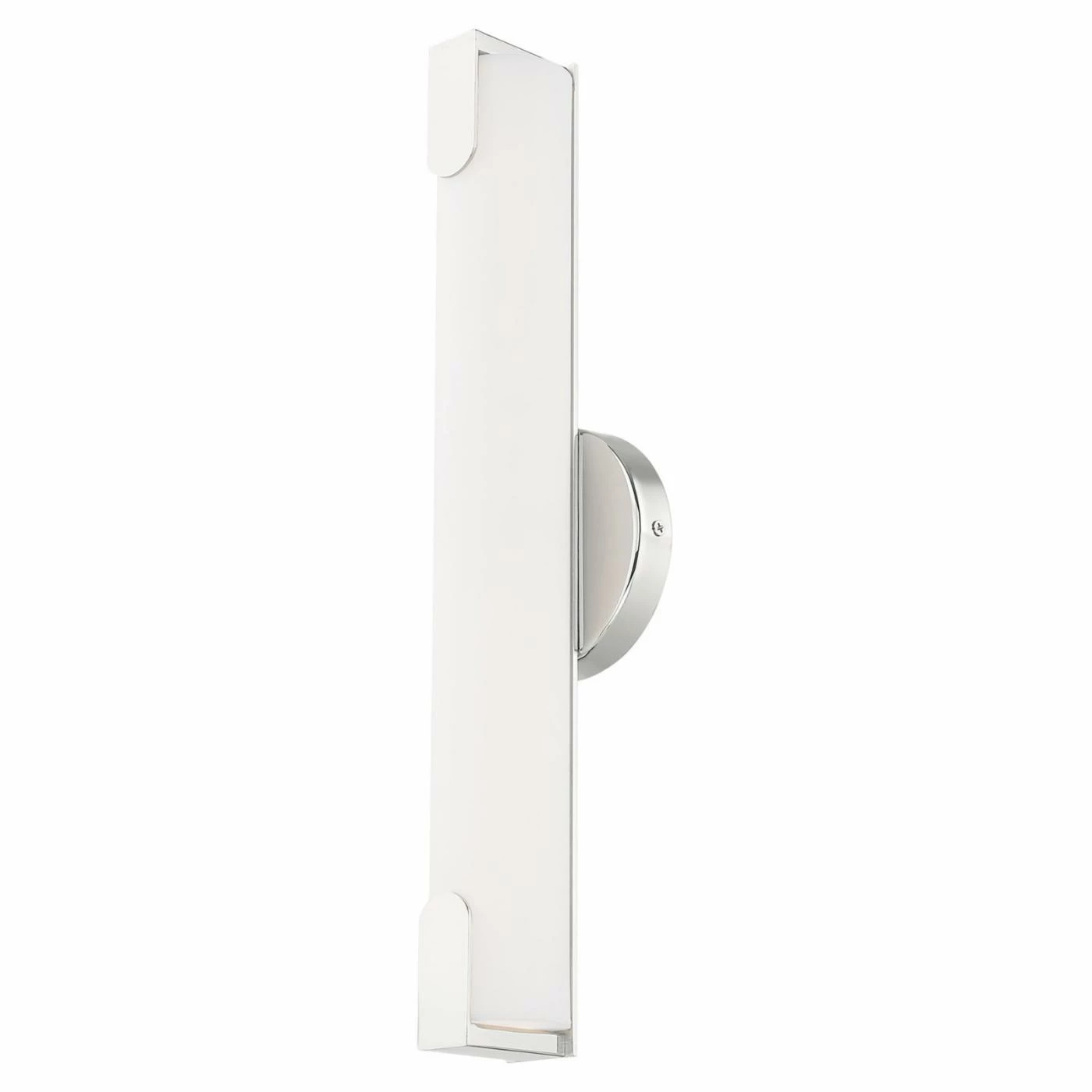 Add a streamlined look to your bathroom with the Livex Lighting Lund 16362 LED Bathroom Vanity Light. The vanity light reduces energy consumption with its dimmable LED lamp, so you can adjust the brightness of the illumination. A white acrylic shade eliminates glare. It can be installed vertically or horizontally.