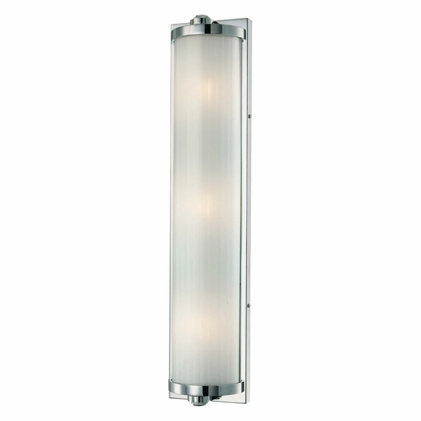 Sleek, clean lines make the Minka Lavery Hyllcastle 6523-77 Bathroom Vanity Light an appealing addition to a minimalist modern bathroom. The chromed steel bar light is equipped with three lamps placed behind a ribbed white glass shade for illumination-diffusing benefits. Suitable for vertical or horizontal mounting, the fixture can be placed beside or above your bathroom mirror.