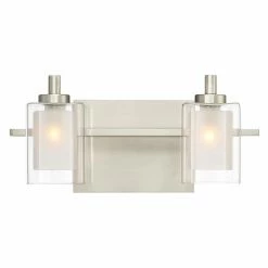 The Quoizel Kolt KLT8602BNLED Vanity Light looks fantastic when grouped in pairs thanks to two double-glass shades attached to the brushed nickel fixture. The inner glass shade has been sandblasted to give off a soft light, and the outer clear glass shade highlights the modern look.