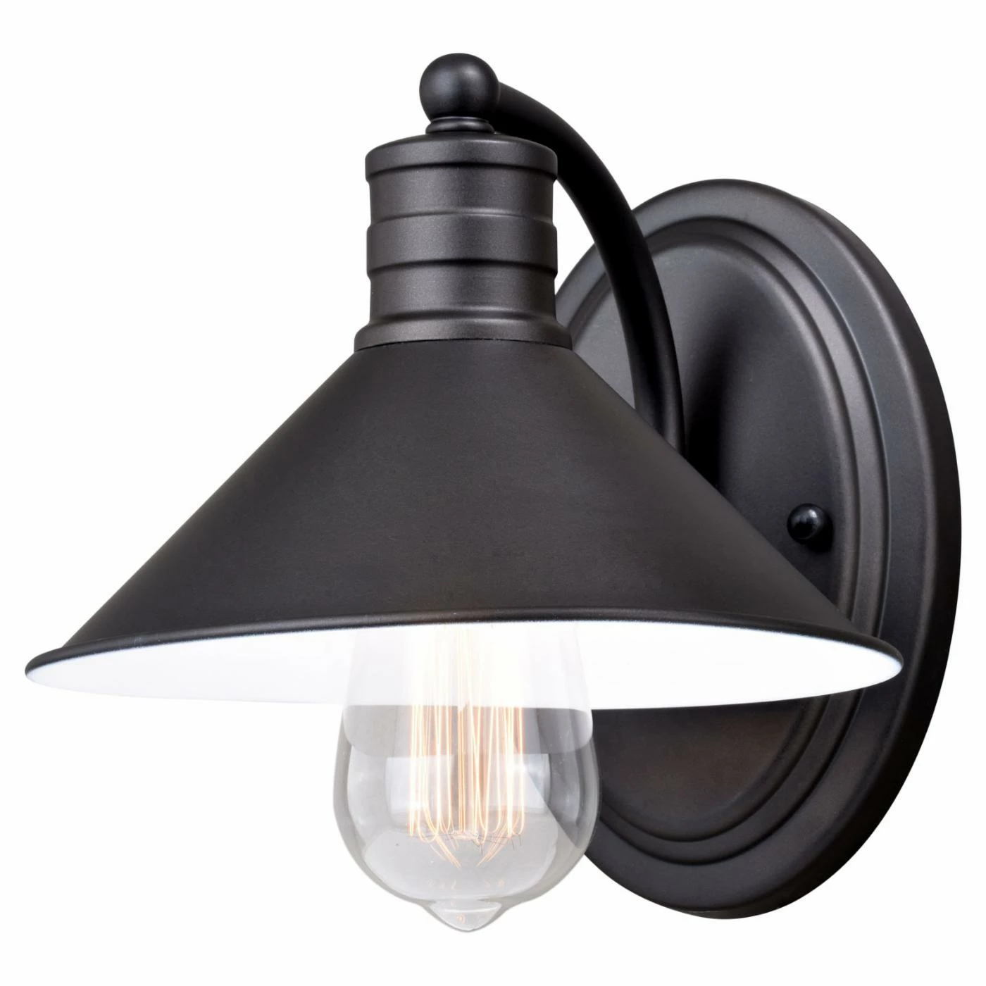 With its flared shade, the Vaxcel Akron W0283 Bathroom Vanity Light offers a simple yet effective way to enhance an industrial or farmhouse theme. The fixture is crafted entirely of steel, so it durable and resilient. Plus, this fixture has an oil rubbed bronze finish with matte white inside of the shade, making it extremely versatile.
