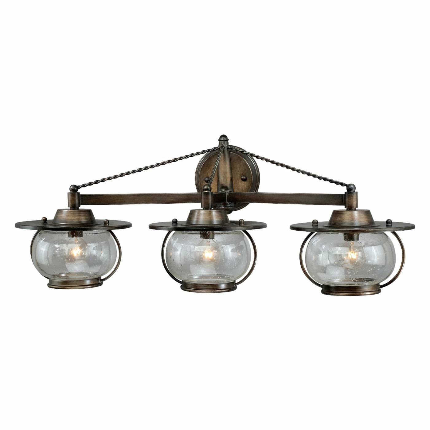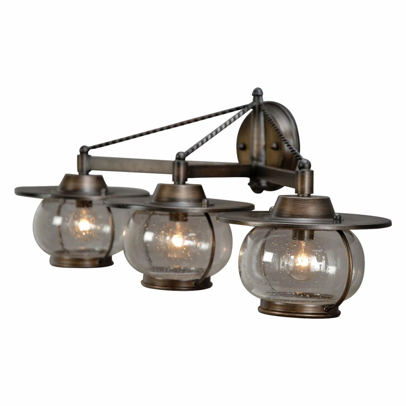 Plymouth-chic may not be technically be a decorating style yet, but we think that the design world will come around, and itβs going to start with the Vaxcel Jamestown 3-Light Vanity – 27.25W in. Parisian Bronze. This wet-rated fixture is suitable for any room in your home, with its bronze-finished metal body and the seeded glass shades that give off a shifting, Old World light. This fixture requires three 60-watt, G9 bulbs.