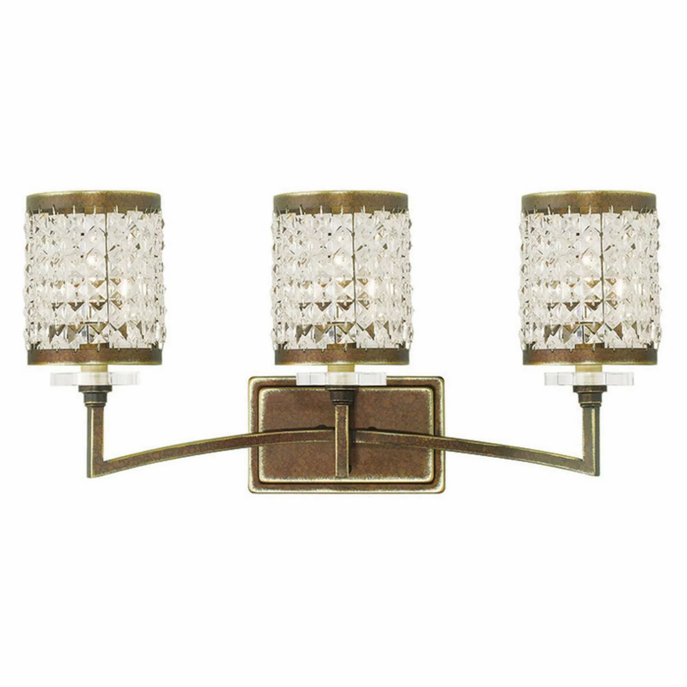 Available in select finish options, the Livex Lighting Grammercy 50563 3 Light Bathroom Vanity Light features sparkling crystal shades adding to its vintage style. Requires three 60-watt candelabra base bulbs (not included).