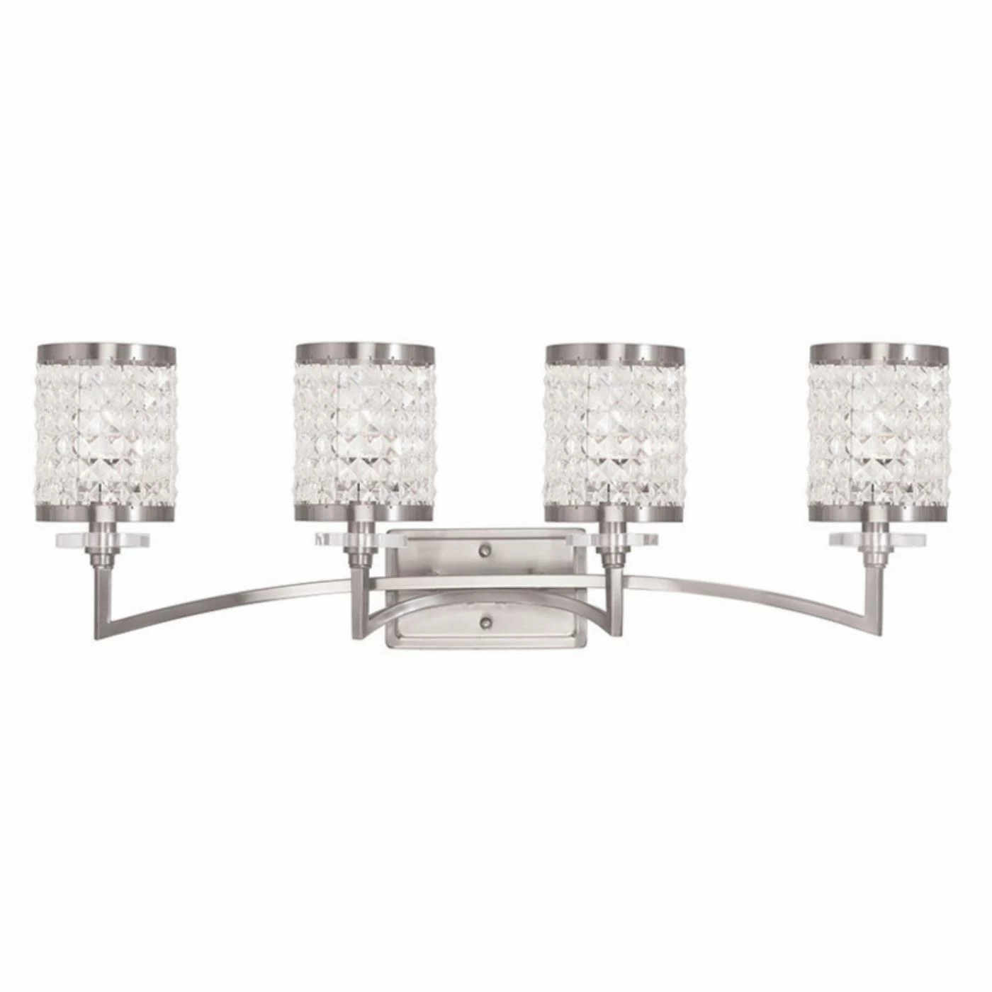 Add glamour to your bath with the sparkling Livex Lighting Grammercy 50564 4 Light Bathroom Vanity Light. Requires four 60-watt candelabra base bulbs (not included).