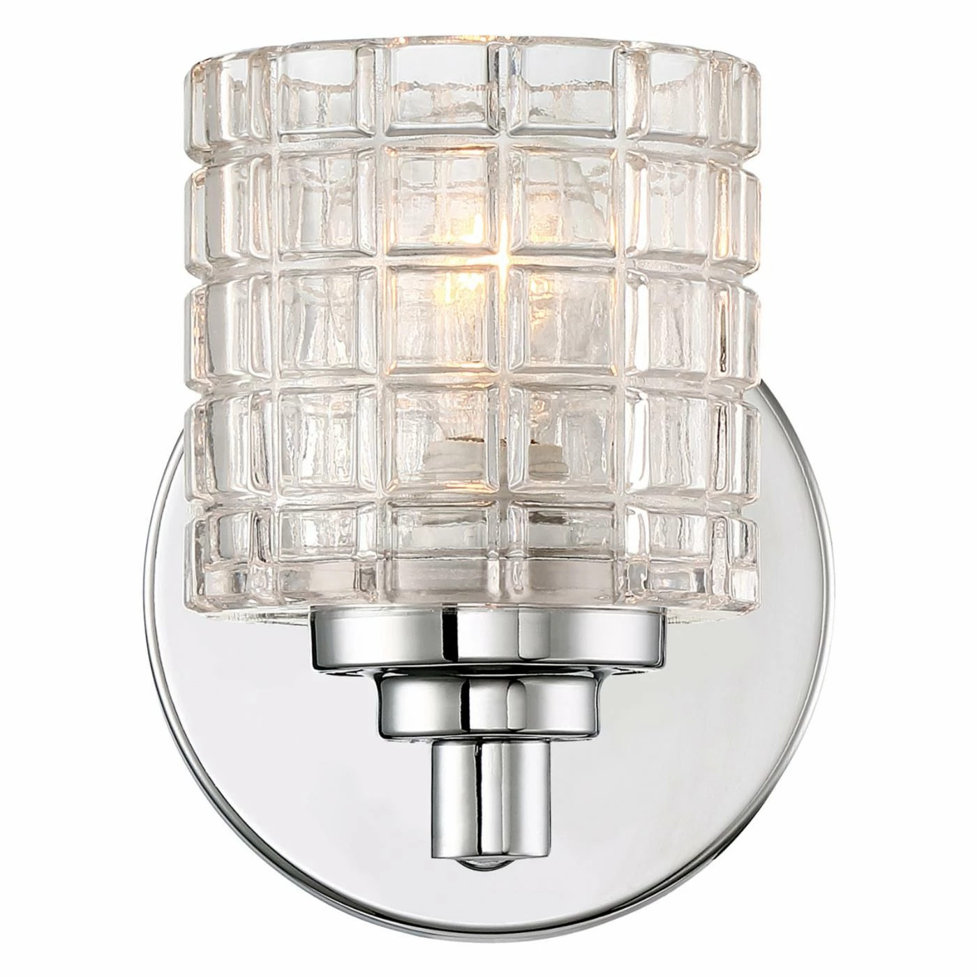 Light up your bathroom in glamorous style with the Nuvo Lighting Votive 1 Light Vanity Light, featured in a single light design. This modern vanity light is made of steel in a bright polished nickel finish for plenty of sleek shine. The glass shade has a fabulous crystal-like appearance that lends it a sense of sheer opulence.