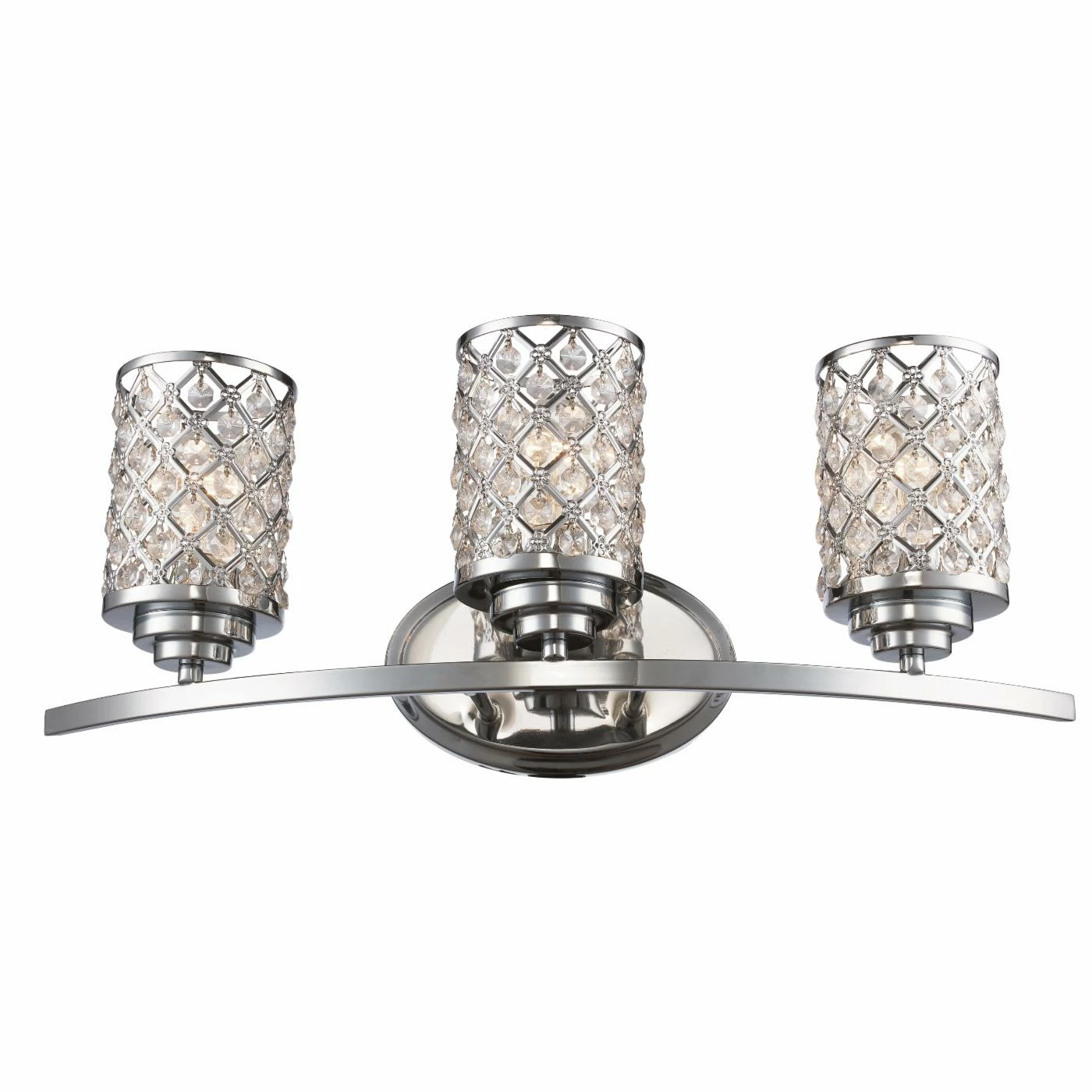 Add a touch of luxury to your bathroom with the Trans Globe Lighting Infusion 70913 PC Bathroom Vanity Light‘s gleaming metal and crystal design. Three 60-watt incandescent bulbs shine brightly through the crystal accents in the chrome-finished drum shades.