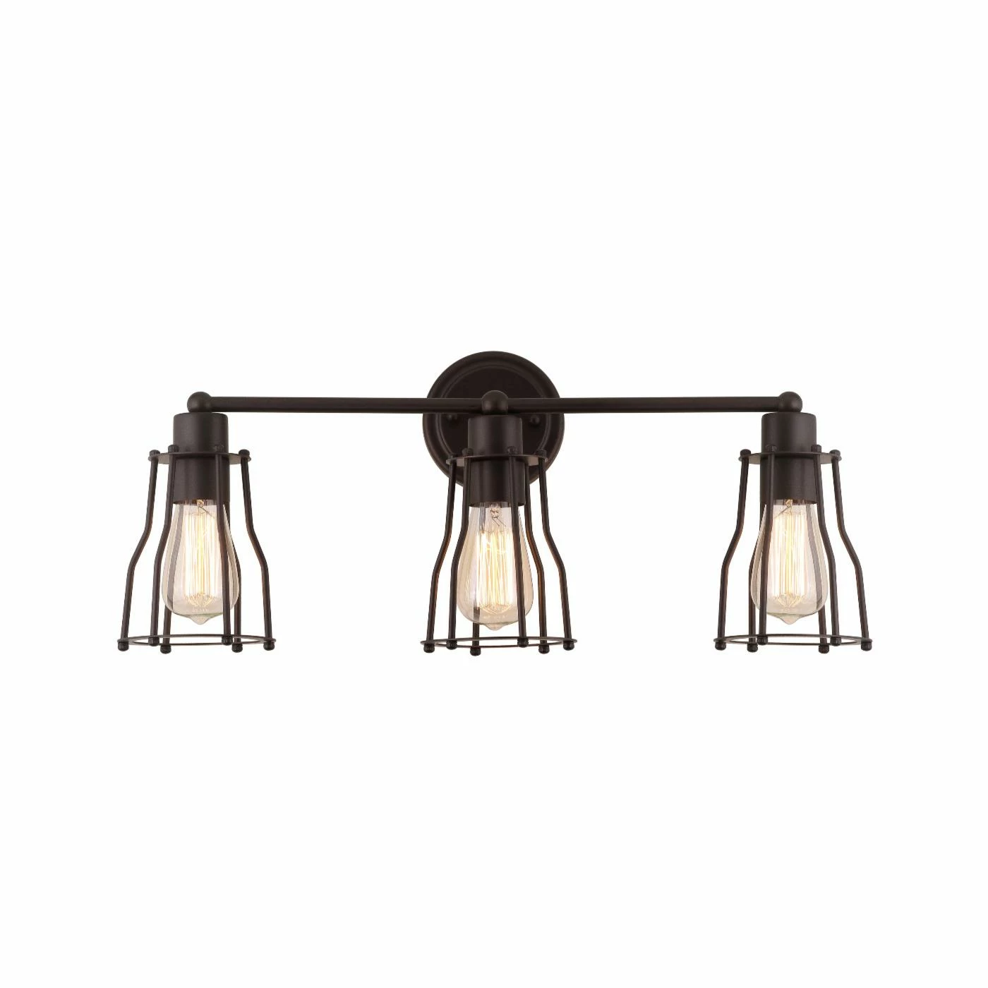 The JONATHAN Y Florence 3 Light Vanity Light boasts sturdy metal construction in an oil rubbed bronze finish. The cage-style shades of this vanity light offer unfiltered lighting while creating a vintage look. This vanity light can be installed in an upward or downward position, making it a versatile choice for your home renovations.