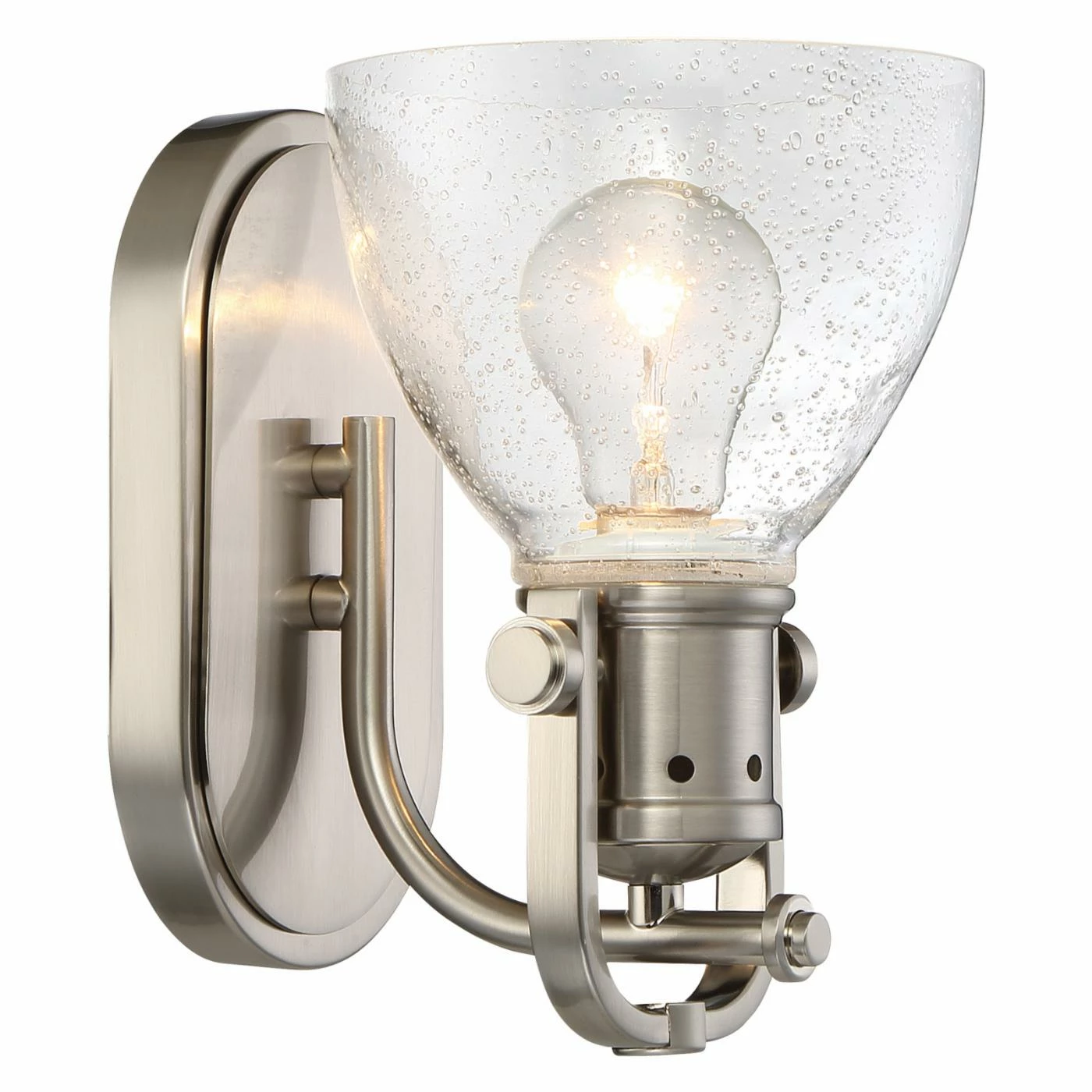 Light your bathroom in interesting fashion with the Minka Lavery 3411-84 Bathroom Vanity Light. This slightly industrial vanity light features a brushed nickel base topped with a clear seeded glass shade for rich texture.