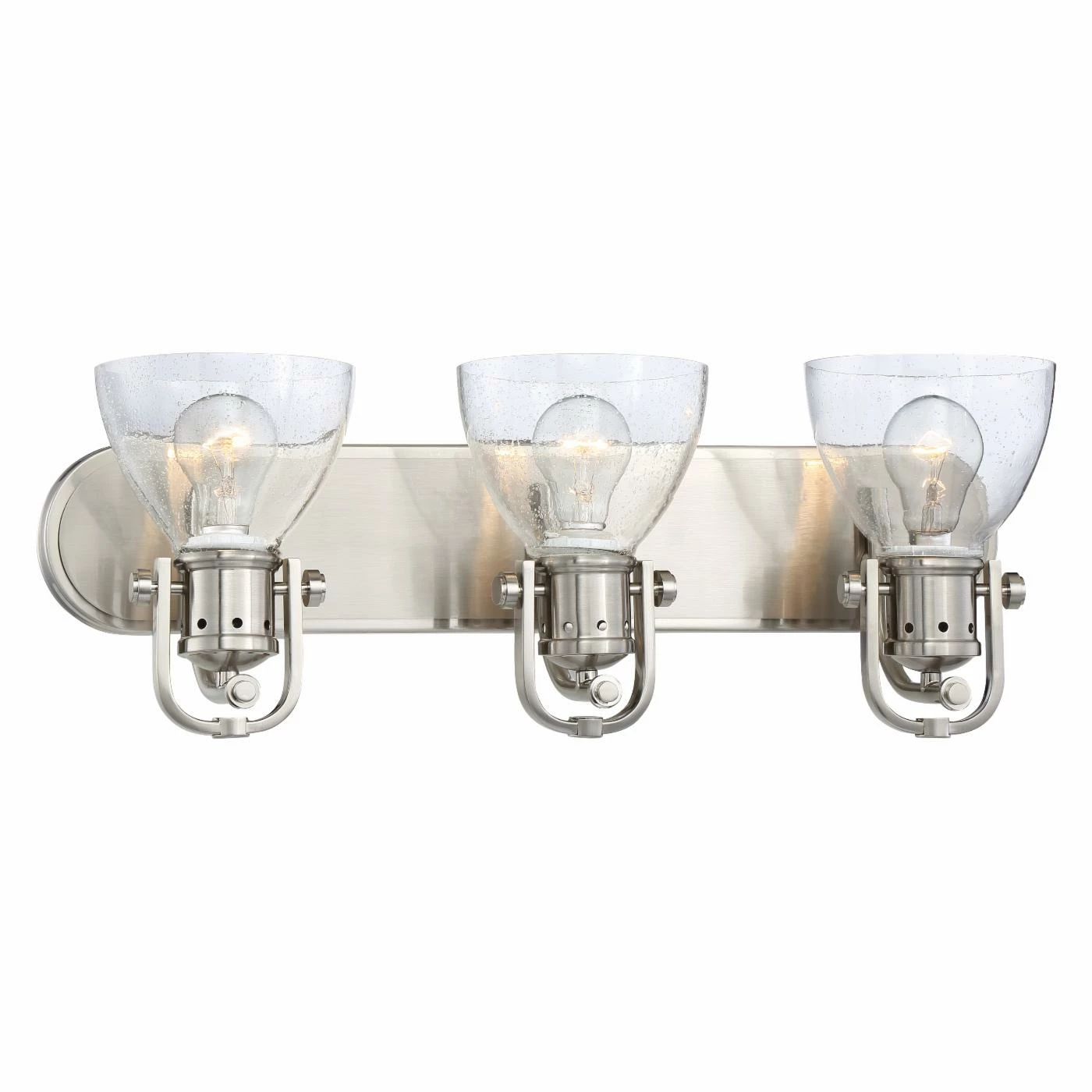 Show off your love for industrial style by illuminating your bathroom with the Minka Lavery 3413-84 Bathroom Vanity Light. This vanity light features a trio of bulbs housed in seeded glass shades. A brushed nickel finish enhances the look of the fixture.
