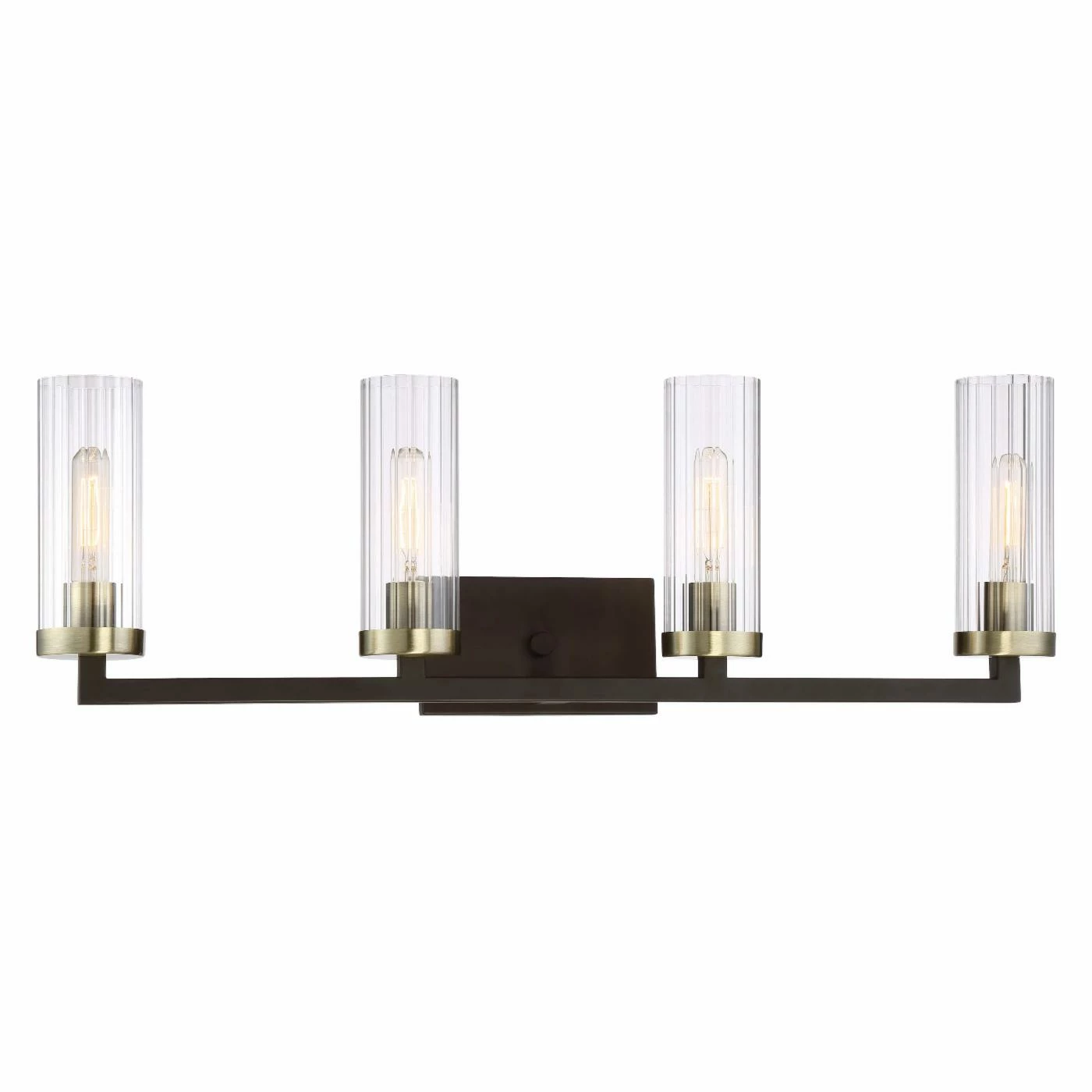 The Minka Lavery Ainsley Court 3044-560 Bathroom Vanity Light gives sophisticated styling to your bathroom with its deep bronze finish accented with shimmering copper rims. This industrial-inspired bathroom vanity light includes clear glass cylinder shades for a bright output of light.