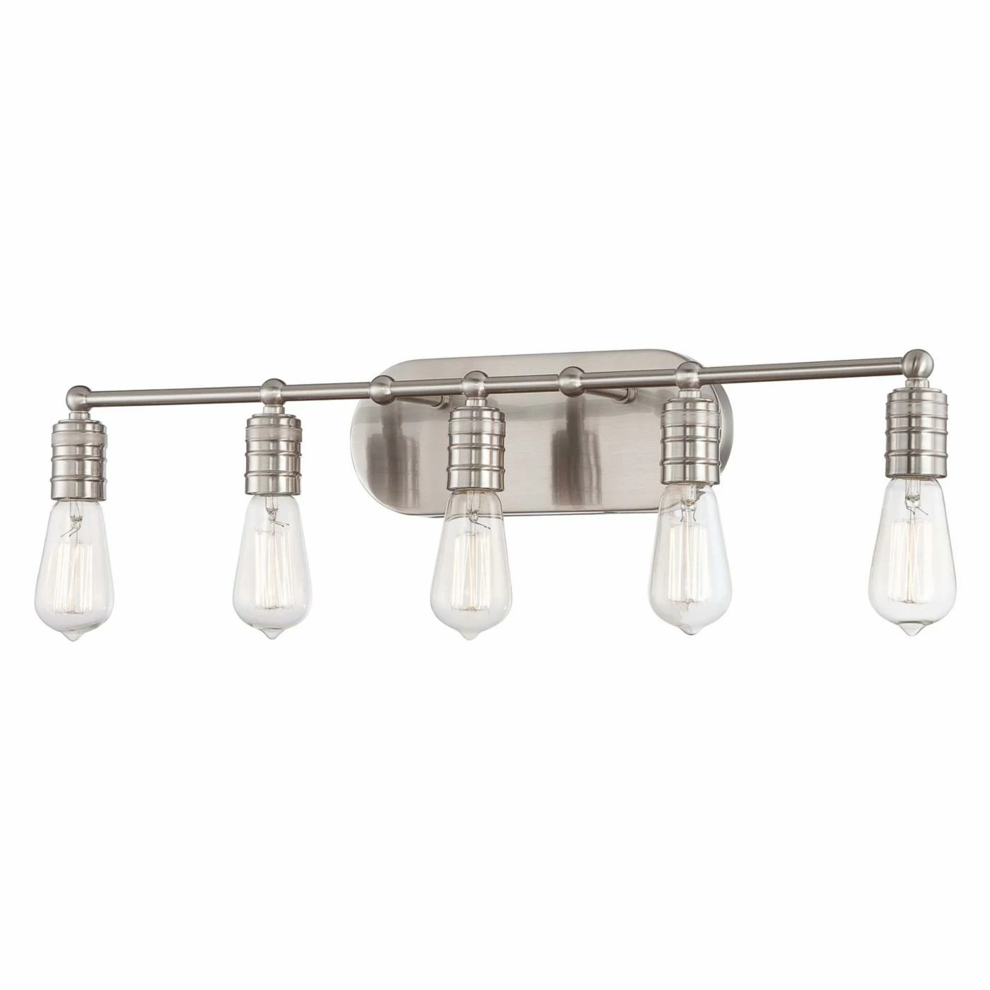 Showcase your love for modern, industrial style by trading out your existing light fixture for the Minka Lavery Downtown Edison 5136-84 Bathroom Vanity Light. This vanity light features a long support that lines up five exposed bulbs with vintage appeal.