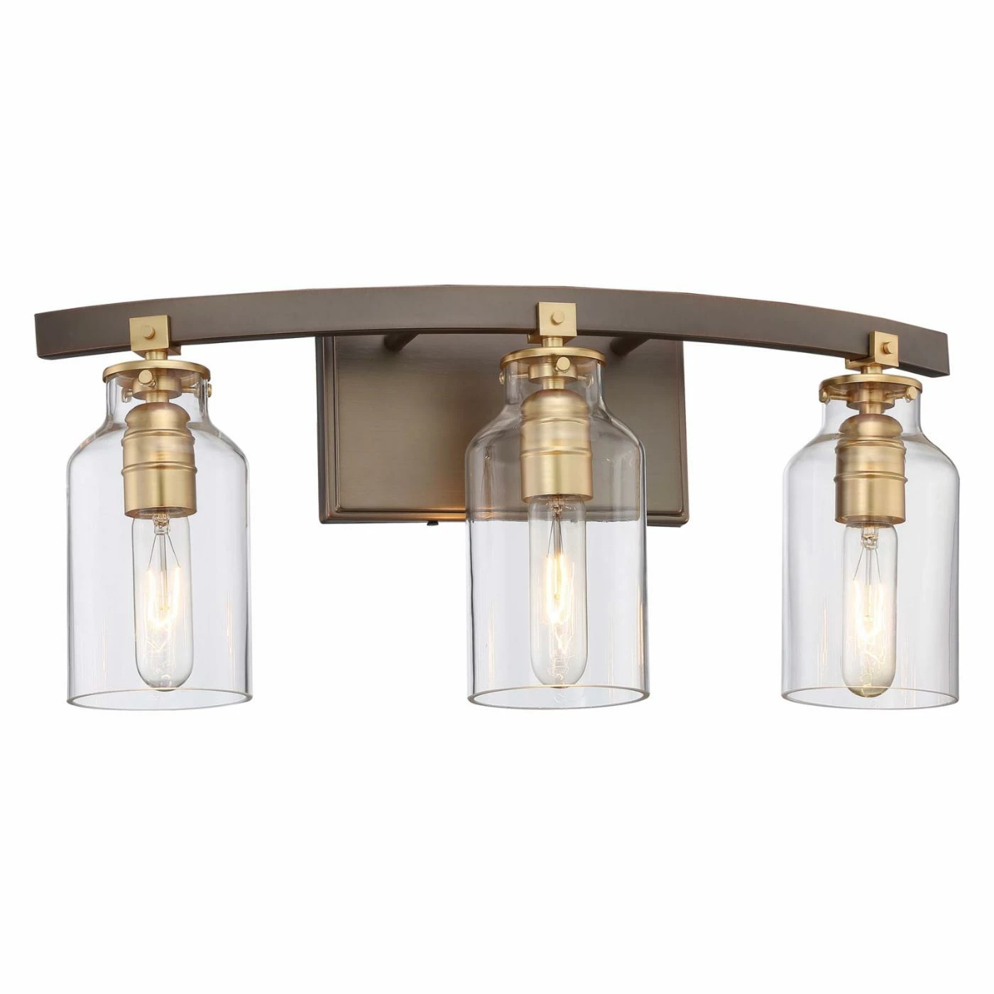 Cast light down on your bathroom in industrial fashion with the Minka Lavery Morrow 3553-588 Bathroom Vanity Light. This two-toned vanity light is finished with clear glass shades that surround the included, Edison-style bulbs.