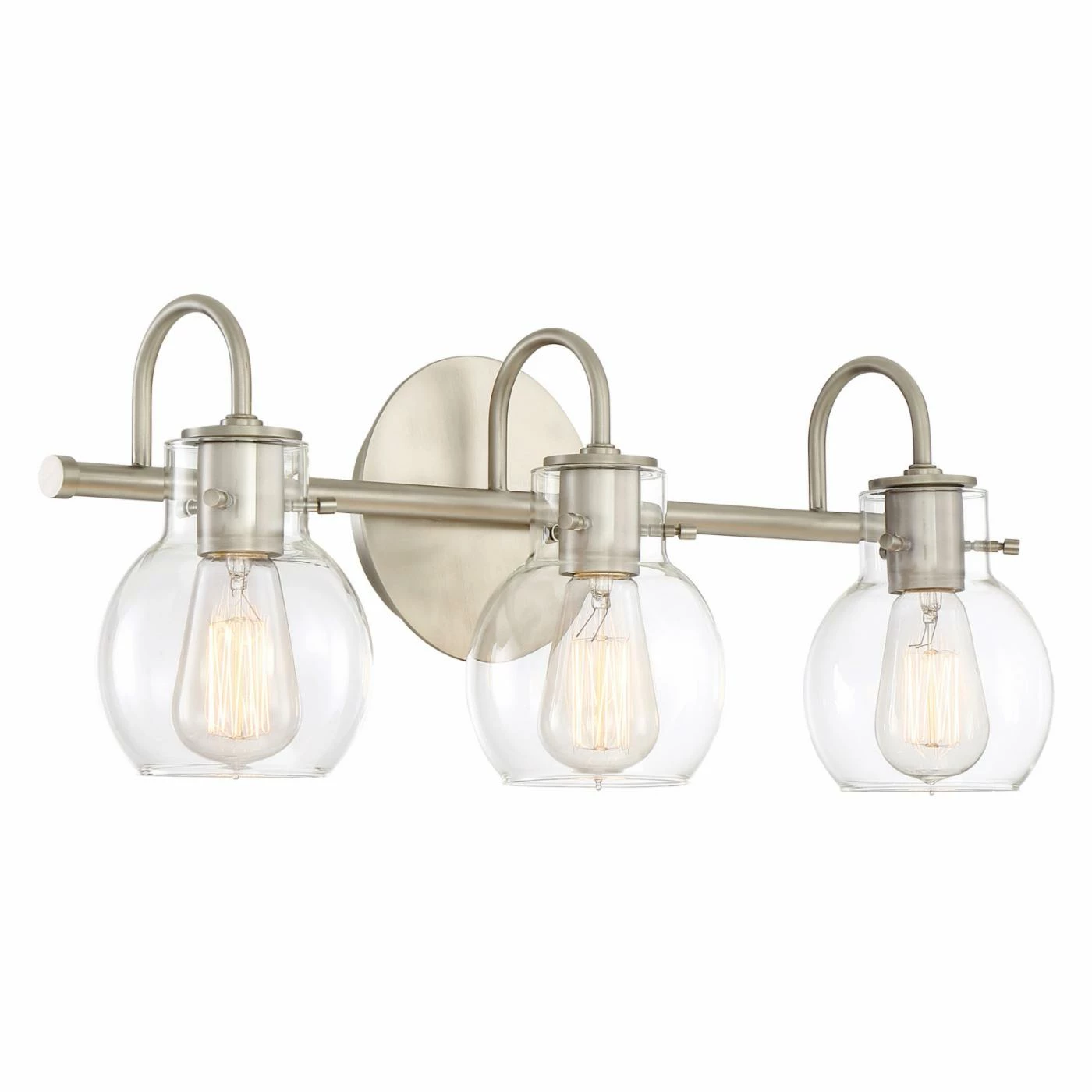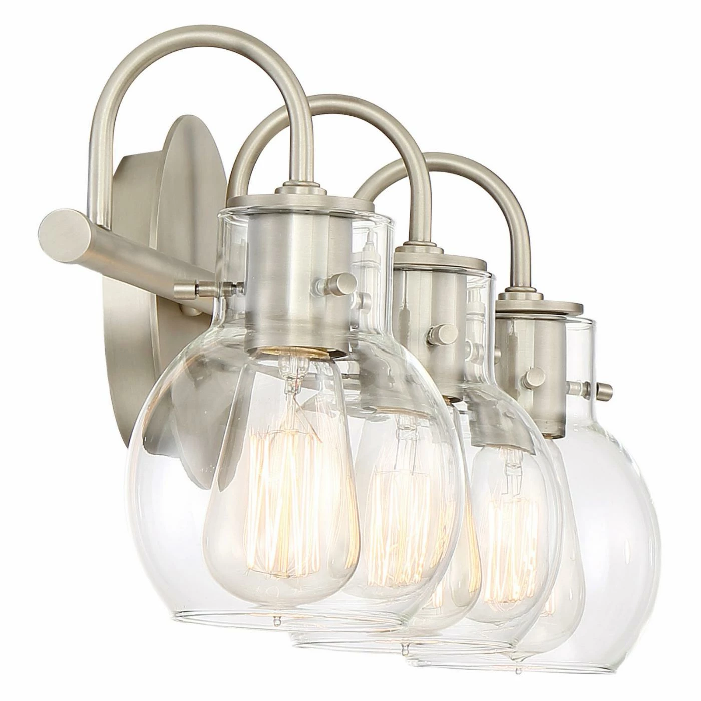 The Quoizel Andrews ANW8603AN Vanity Light adds a bold design to your bathroom with three clear glass shades that look ideal with an Edison bulb. The beautiful antique nickel finished mount brings this light an elegant look and helps bring the design together for a seamless light youβll treasure.