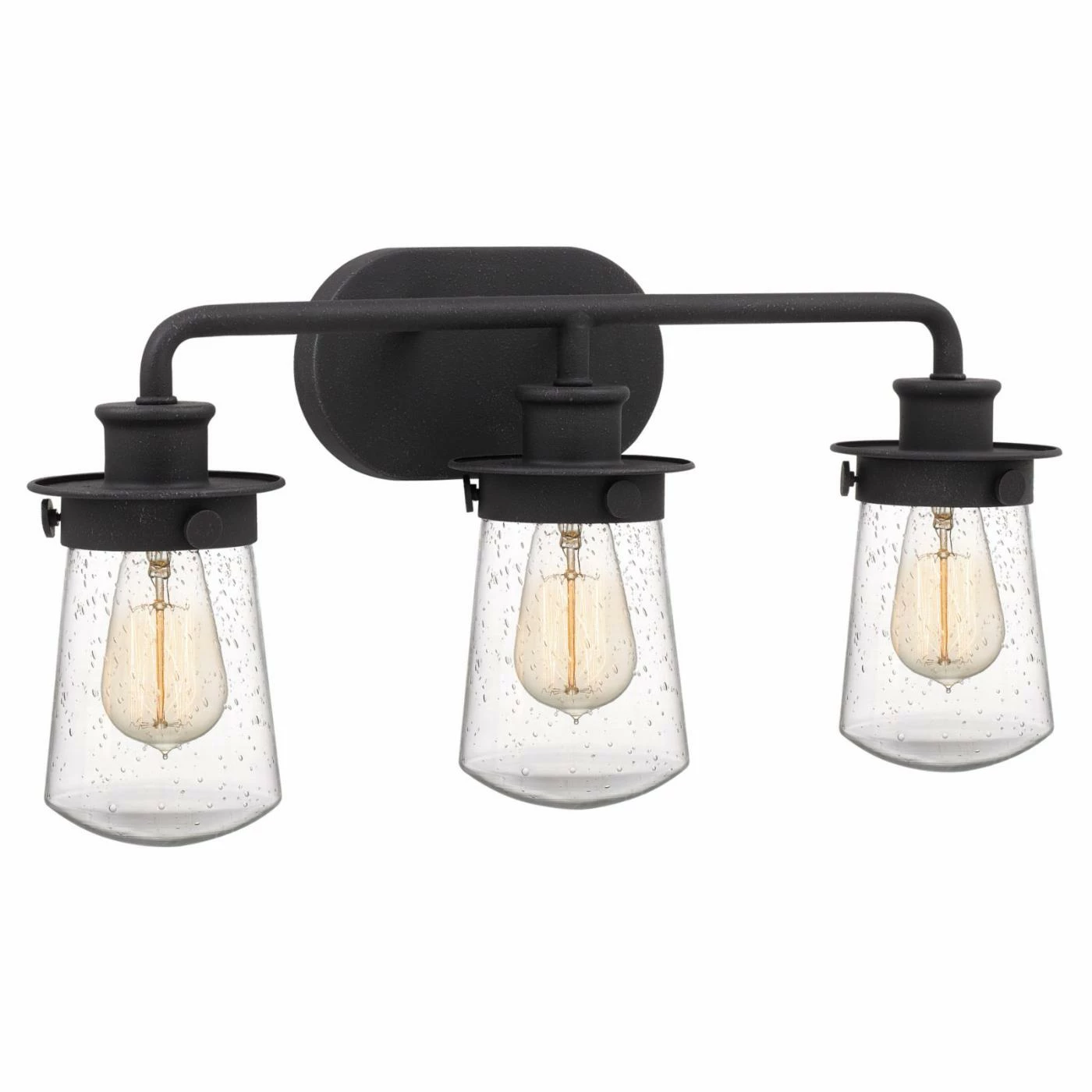 TheΒ Quoizel Lewiston 3 Light Bathroom Vanity Light is a timeless classic. This bathroom vanity light has a sturdy steel construction that will last for years. Its three lights have clear glass shades for vibrant illumination. Choose from available finishes to get the right look for your bathroom.
