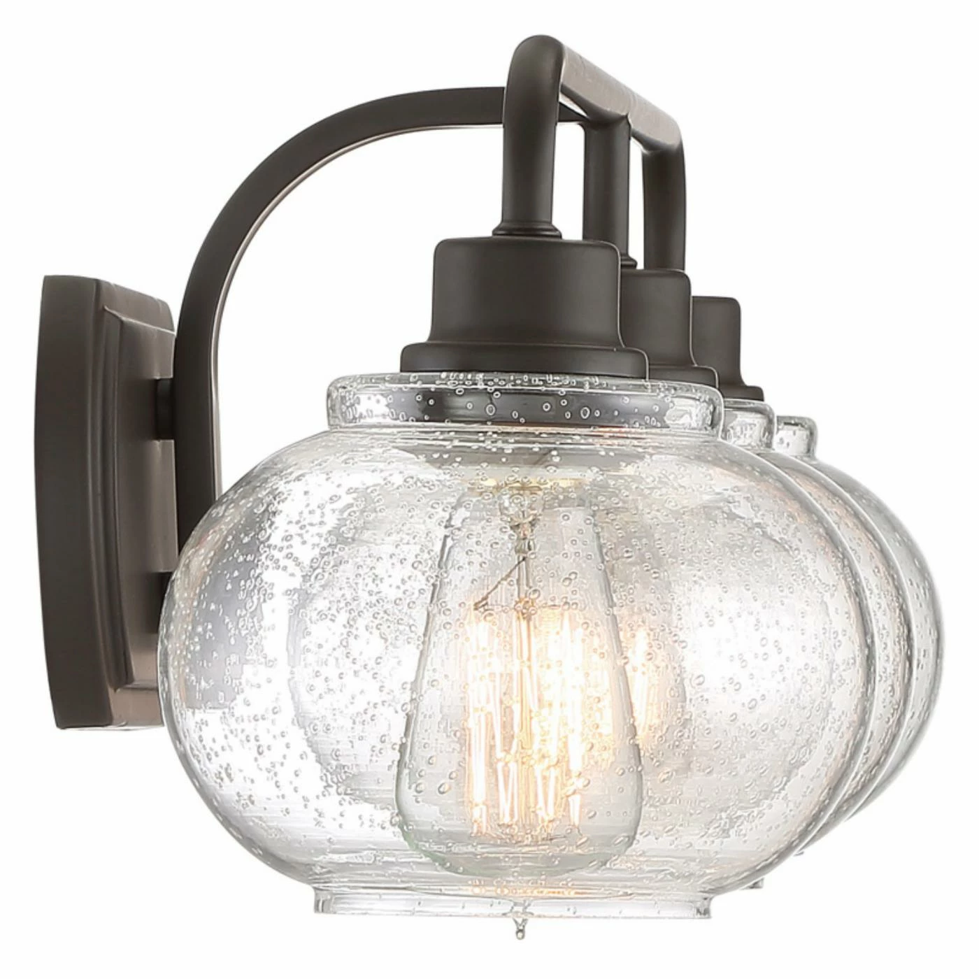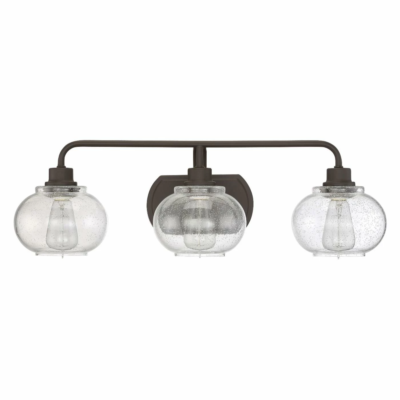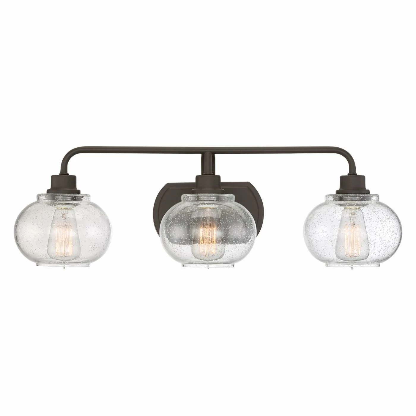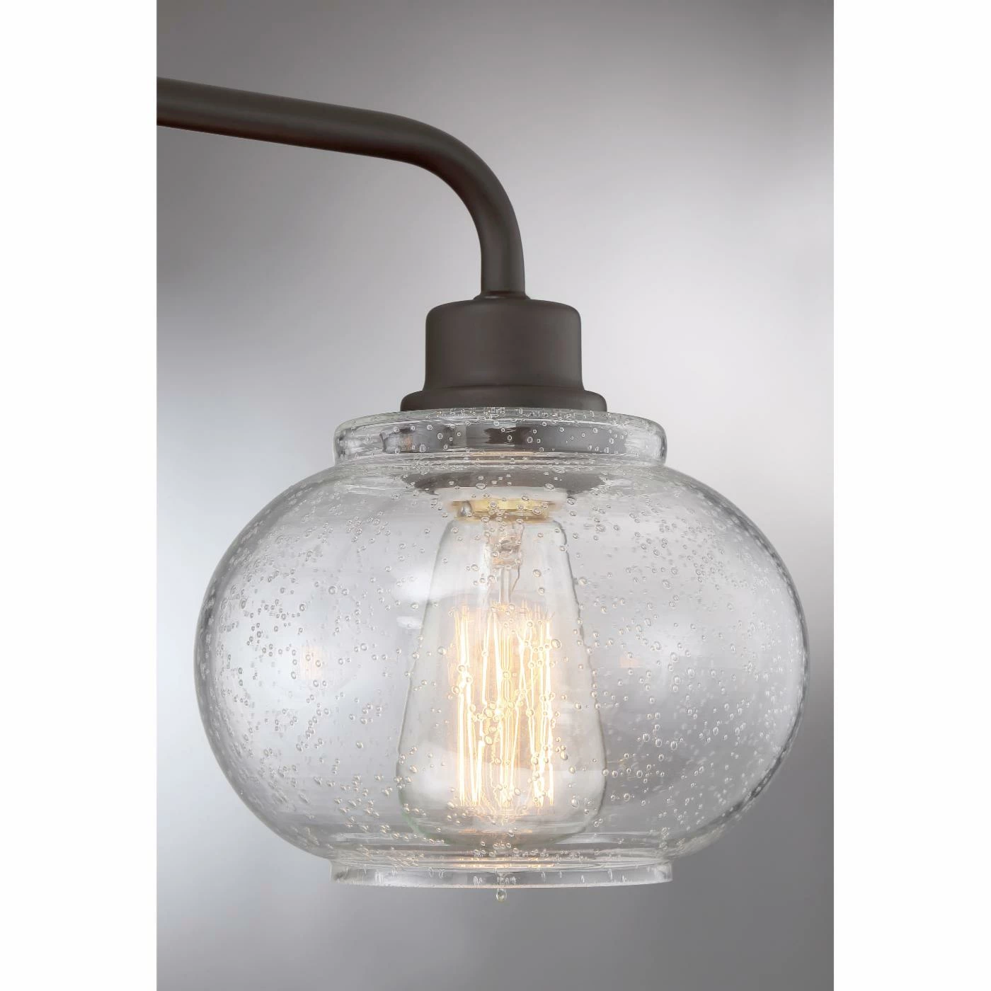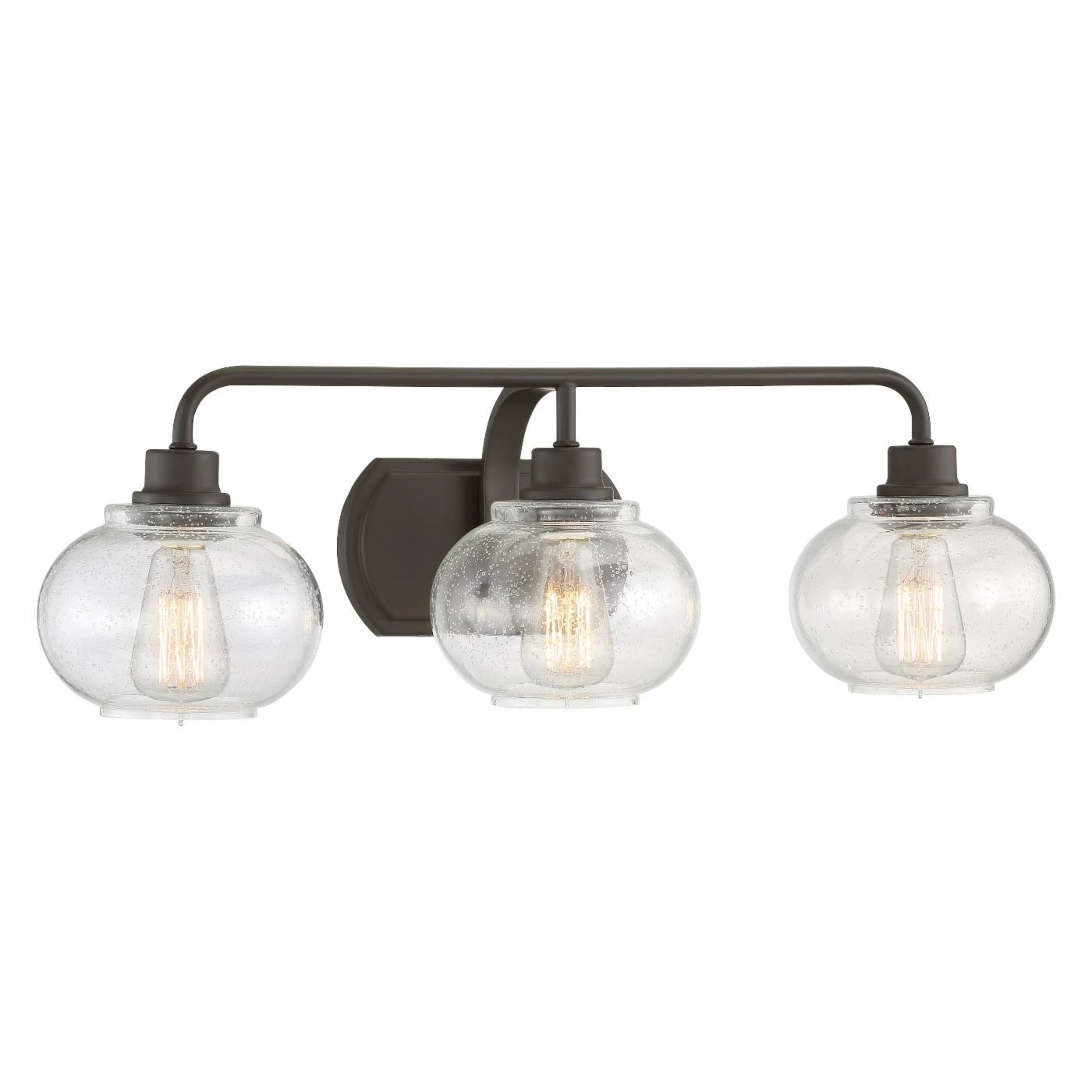 The Quoizel Trilogy TRG8603OZ Vanity Light lends chic nostalgia to your bathroom with a bold, bronze finished fixture accented with clear bubble glass shades. This impressive light adds brightness to your home and gives it a modern, industrial vibe.