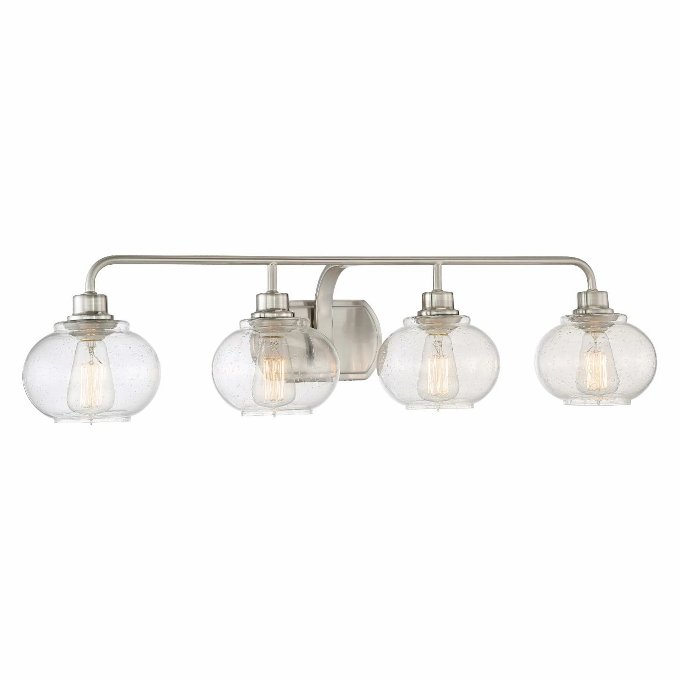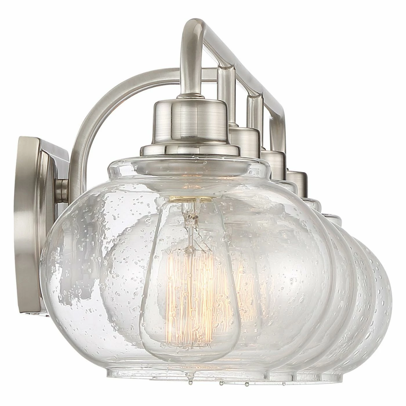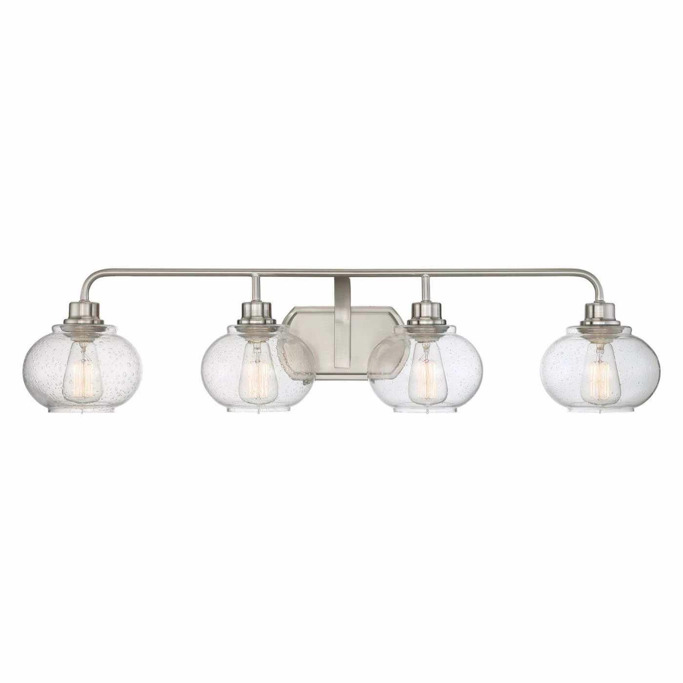 The Quoizel Trilogy TRG8604BN Vanity Light is unique and chic with large bubble glass shades that highlight the filament bulbs housed inside. A lovely classic brushed nickel finish adds elegant beauty to the wall-mounted fixture to create an awe-inspiring design.