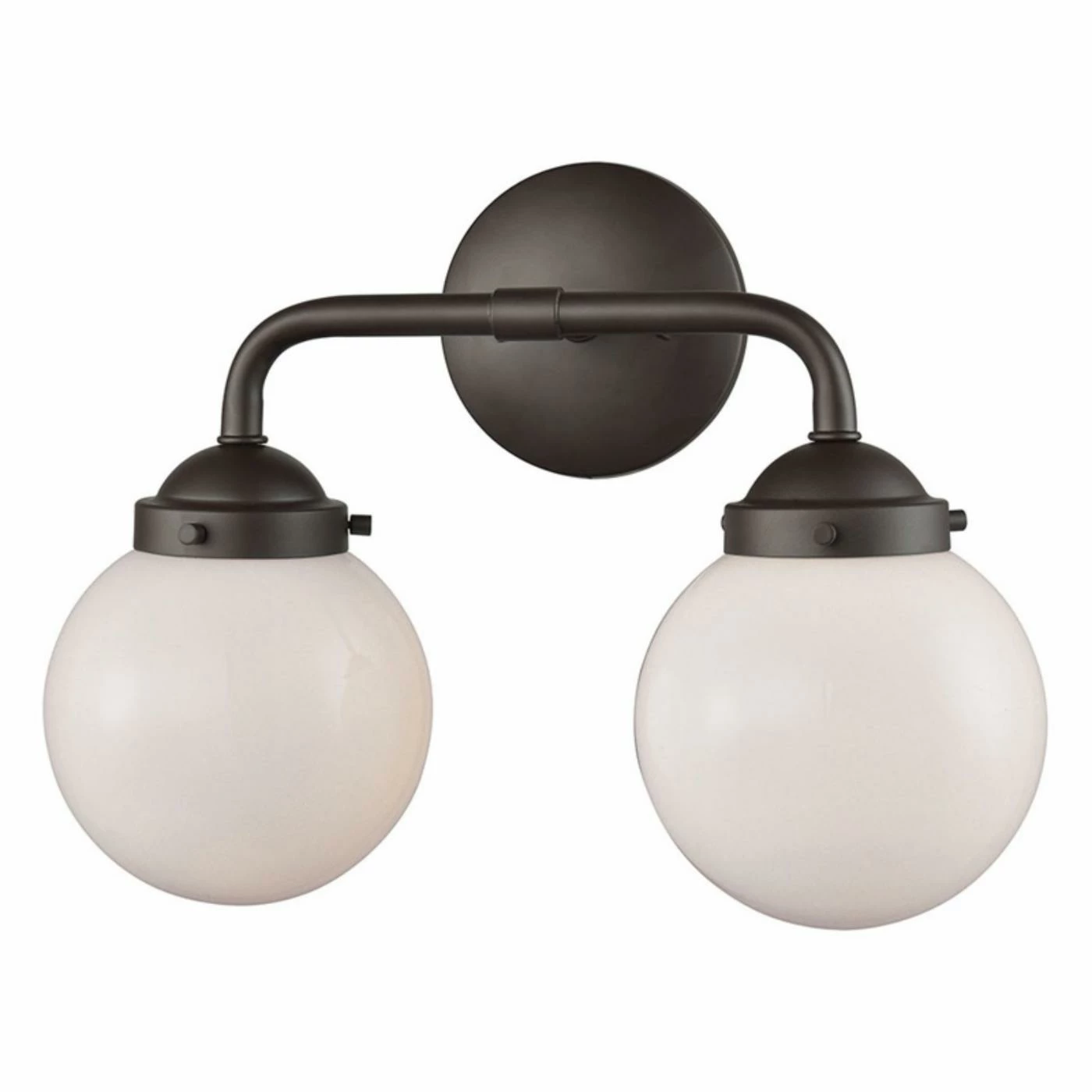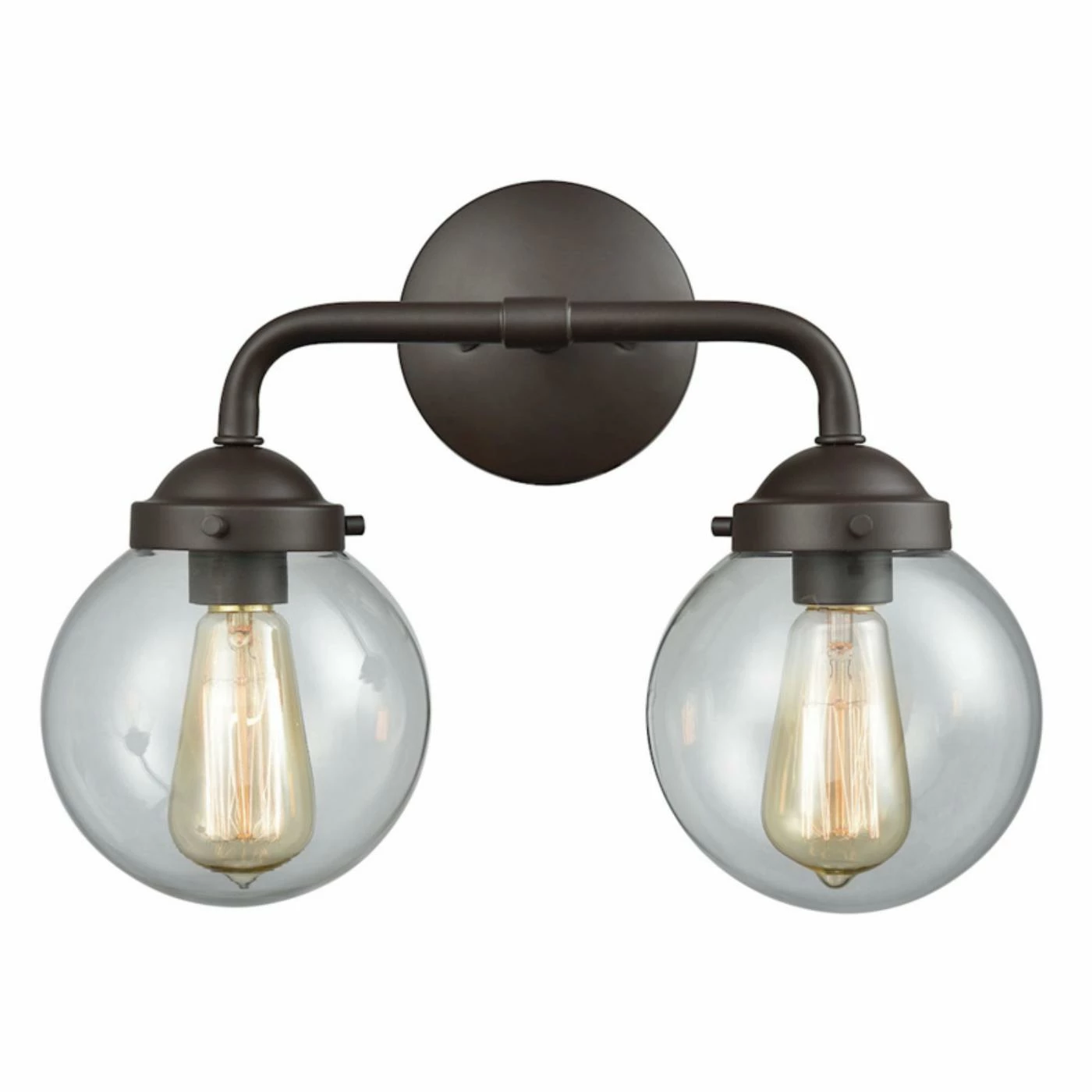 Get the illumination that you require in your industrial bathroom from the Thomas Lighting Beckett 2 Light Vanity Light. The oil rubbed bronze metal wall light can be mounted with its two lamps facing up for ambient illumination or down for task lighting.