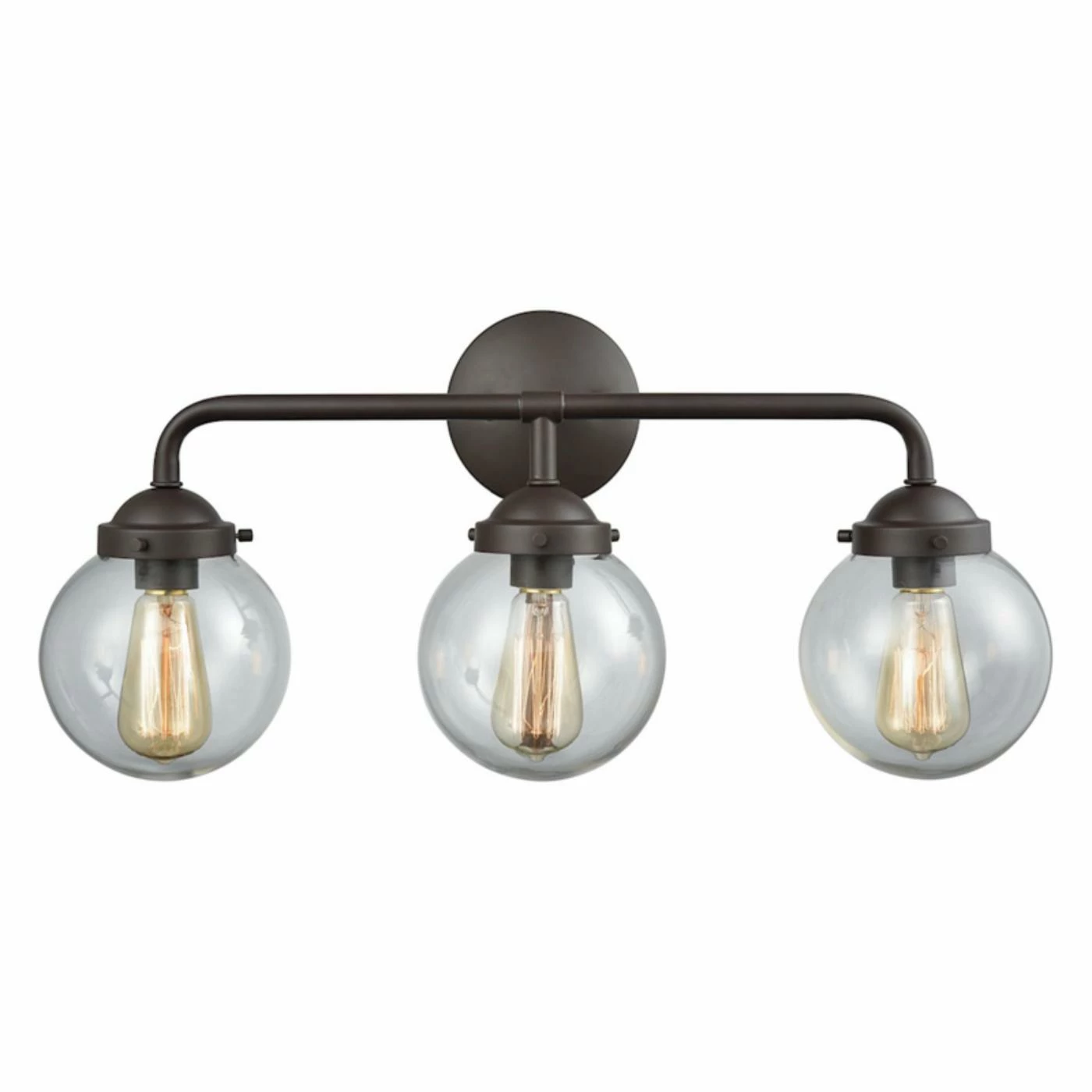 Whether you require ambient or task lighting in your industrial bathroom, the Thomas Lighting Beckett 3 Light Vanity Light is the ideal fixture to meet your illumination needs and match your style. The three lamps of the oil rubbed bronze-finished metal fixture can be installed as uplights or downlights.