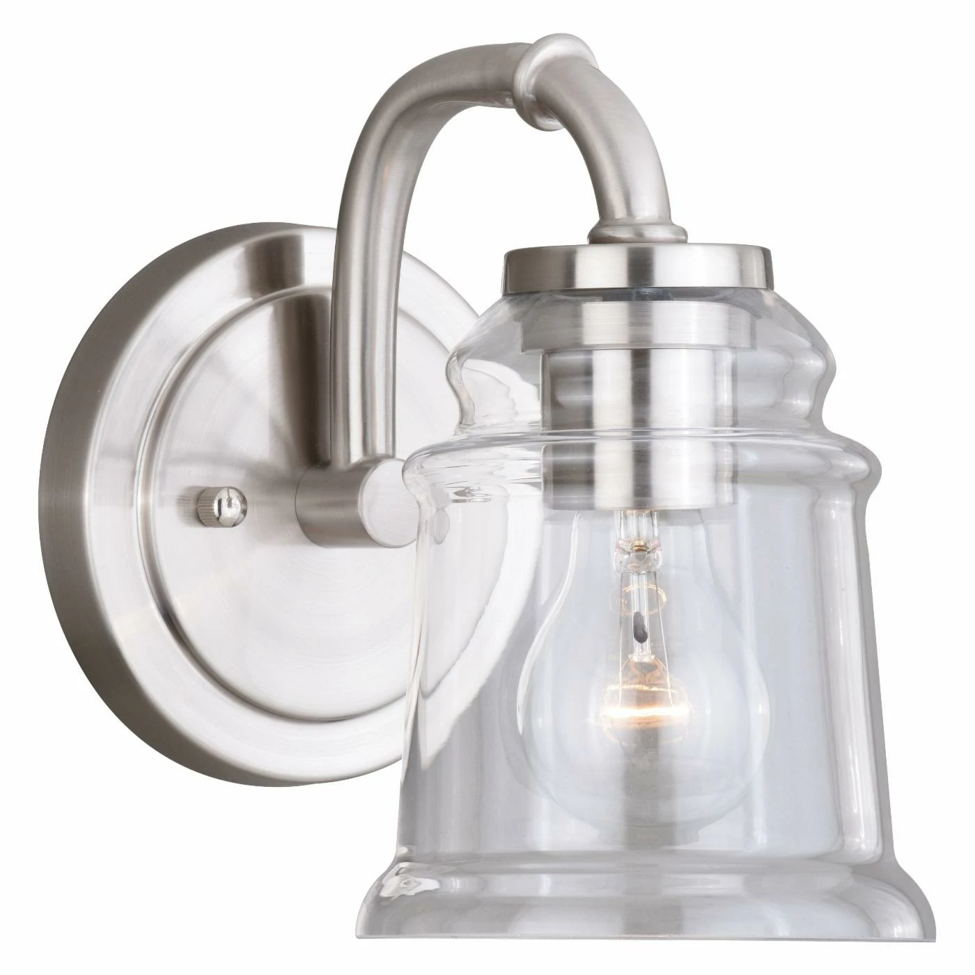 Make your bathroom a chic oasis with the Vaxcel Toledo W0239 Bathroom Vanity Light, featured in a contemporary satin nickel finish. A clear blown glass shade adds a bright look to this charming vanity light. You can mount several over a mirror for a sleek, updated look.