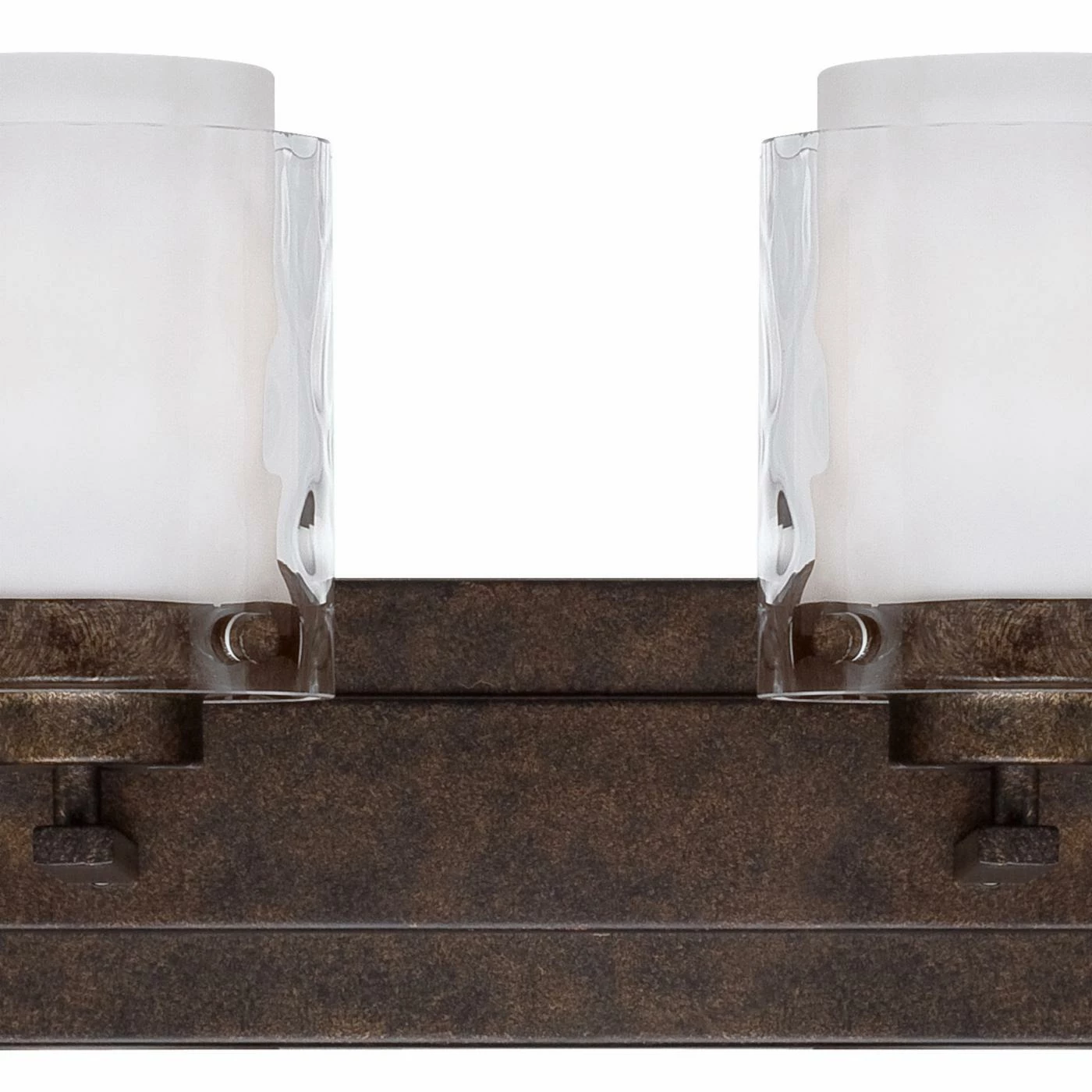 Embellished in a Peruvian-bronze finish, the Craftmade Kenswick 35404-PR 4 Light Bathroom Vanity Light adds a contemporary touch with alabaster glass shades surrounded by hammered glass shades. This bathroom vanity light requires four 60-watt incandescent bulbs (not included).