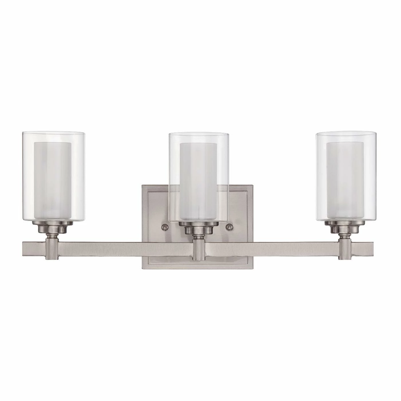 The Craftmade Celeste 16720 3 Light Bathroom Vanity Light features frosted shades embedded within the clear glass shades for an artistic touch. Choose from available finishes to complete the classic rectangular design. This vanity light requires three 60-watt incandescent bulbs (not included).