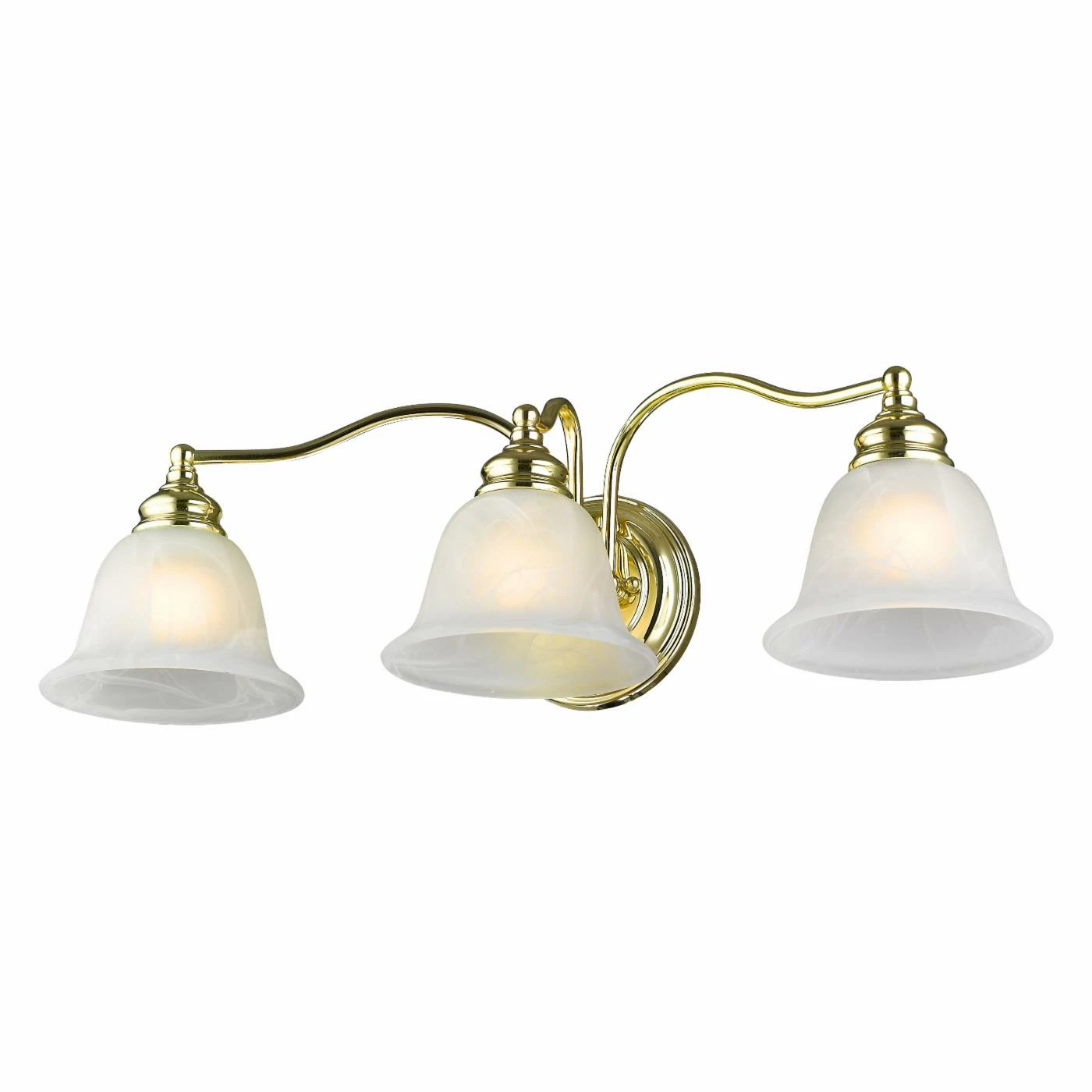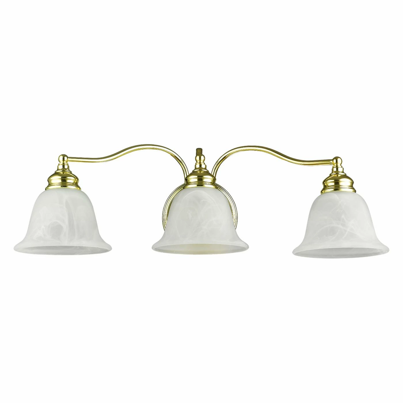 Shine on in style with the Livex Essex 1353-02 3-Light Bath Light in Polished Brass. With a simple, sophisticated aesthetic, this fixture has a round backplate and slender arms, plus a glimmering polished brass finish. The three shades are made of white alabaster glass in a bell shape, and youβll need to add three 100-watt medium ase bulbs.