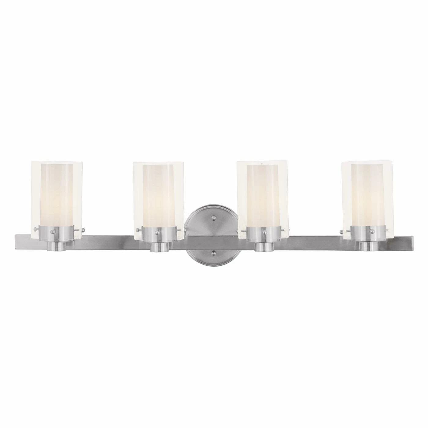 Bright and modern, the Livex Manhattan 1544 Bath Vanity – 31.5W in. offers a chic way to update your bathroom. The metal base includes your choice of available finish, making it easy to coordinate with your existing fixtures.