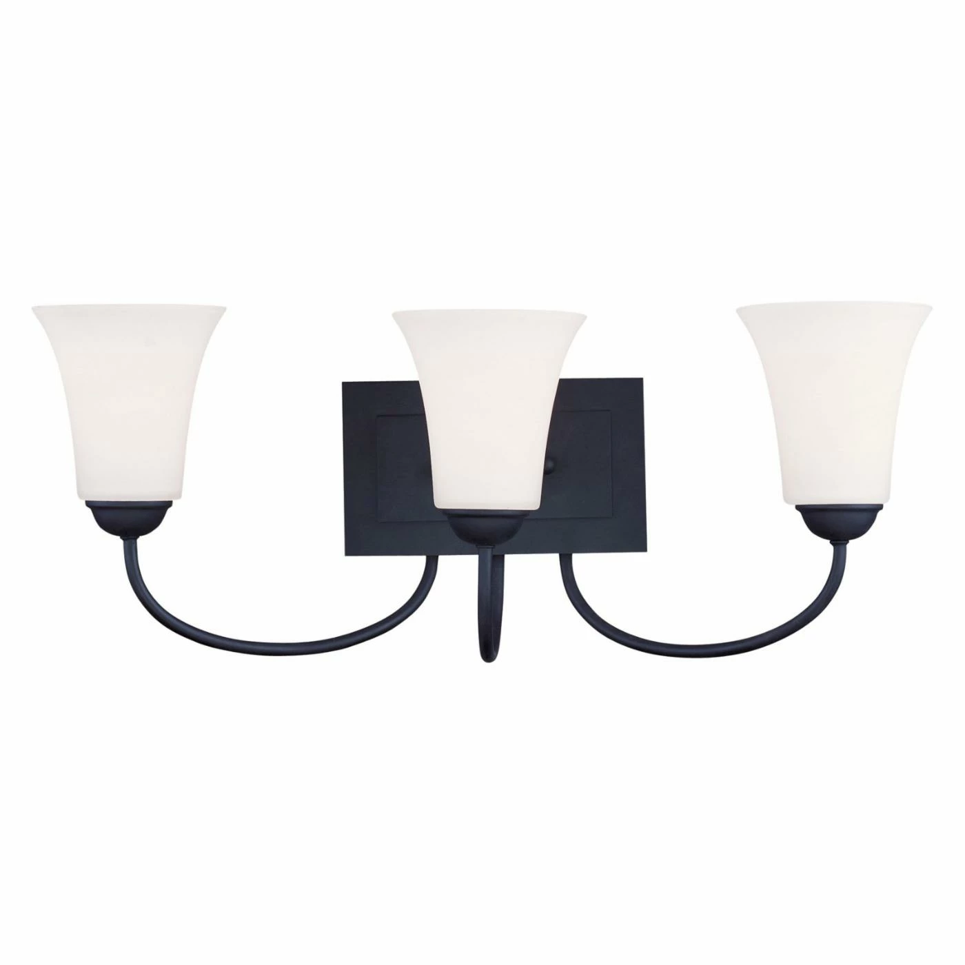 If the bathroom sink had eyes, theyβd be downright glued to the Livex Ridgedale 6483-04 3-Light Bath Light in Black. From its black finish to its rectangular backplate, this vanity light bar is practically bursting with transitional charm. The slender arms hold the three hand-blown satin white glass shades, and the lights require three 100-watt medium base bulbs (not included).