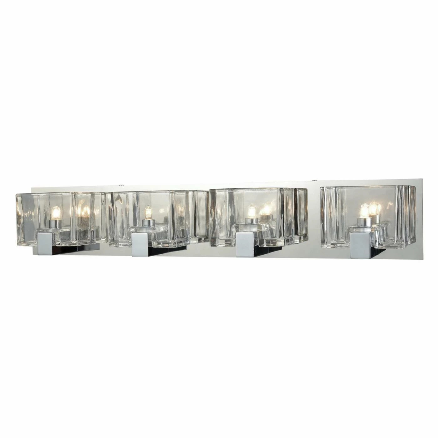 Add geometric visual appeal to your home with the ELK Lighting 119 Ridgecrest 4 Light Bathroom Vanity Light. This sleek, contemporary vanity light is crafted with a sleek metal mount and thick, cubed glass shades. Choose from available finishes and shade color to give your space a customized look that’s all your own.