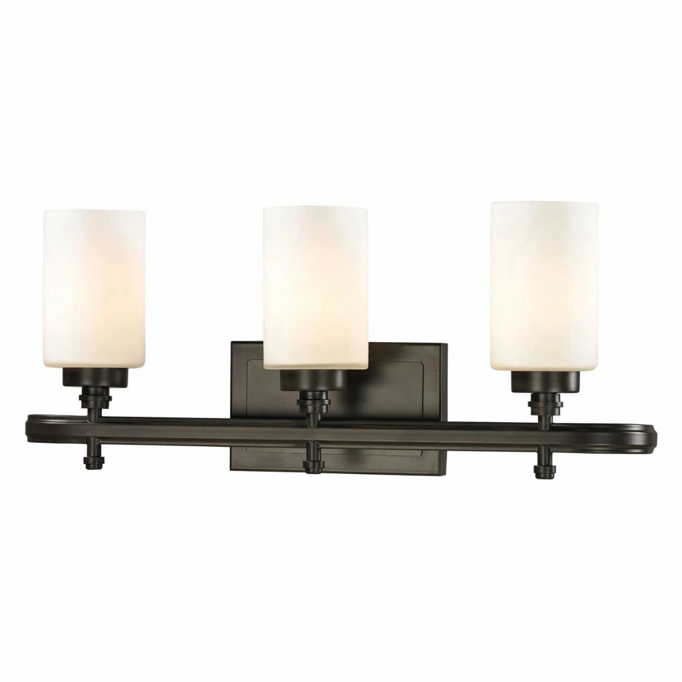 Simple and elegant, the ELK Lighting Dawson 3 Light Bathroom Vanity Light is the perfect finishing touch to your stylish bathroom. A streamlined metal housing and white cylindrical glass shade provide a chic look. This vanity light is offered in your choice of available finishes, and it requires three bulbs. The bulb comes included with the LED option. Bulb sold separately in other options.