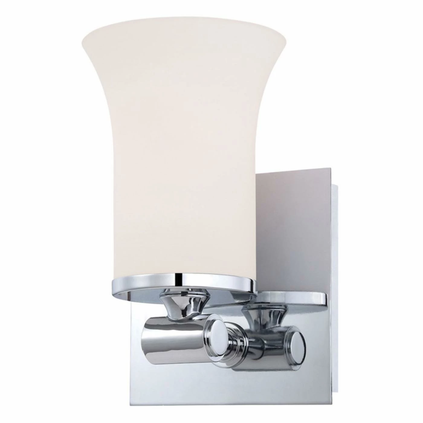 The sleek, modern simplicity of the ELK Lighting Flare 1 Light Bathroom Vanity Light is the perfect way to illuminate your contemporary bathroom. A streamlined metal housing features a shiny chrome finish. The white glass shade filters the light, creating a soft glow. This vanity light requires one 100-watt bulb (not included).