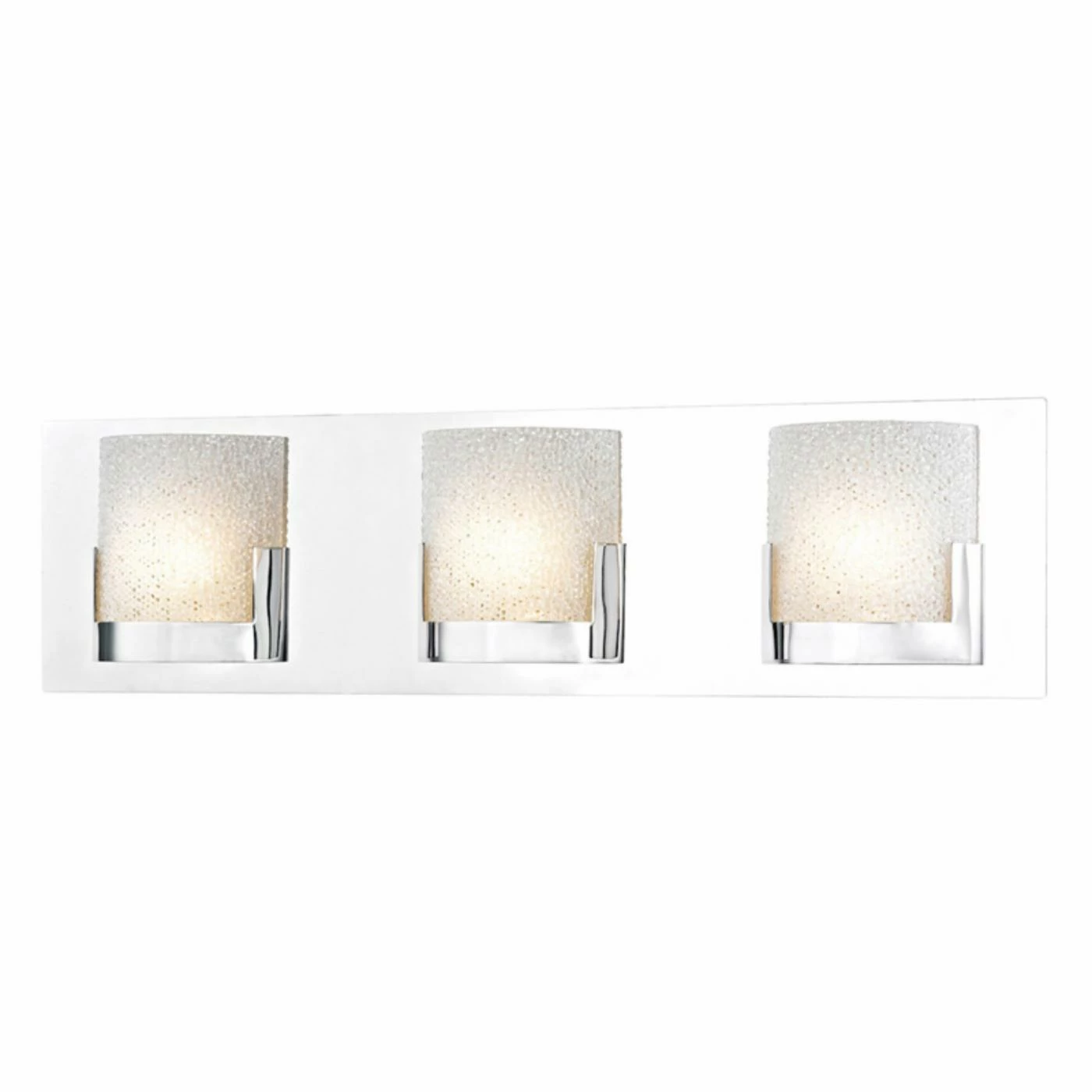 The ELK Lighting Ophelia 3 Light Bathroom Vanity Light packs a big punch of modern style in a compact package. The sturdy iron housing features a chrome finish. A textured glass shade completes the chic look. This vanity light features three 5-watt integrated LED lights.