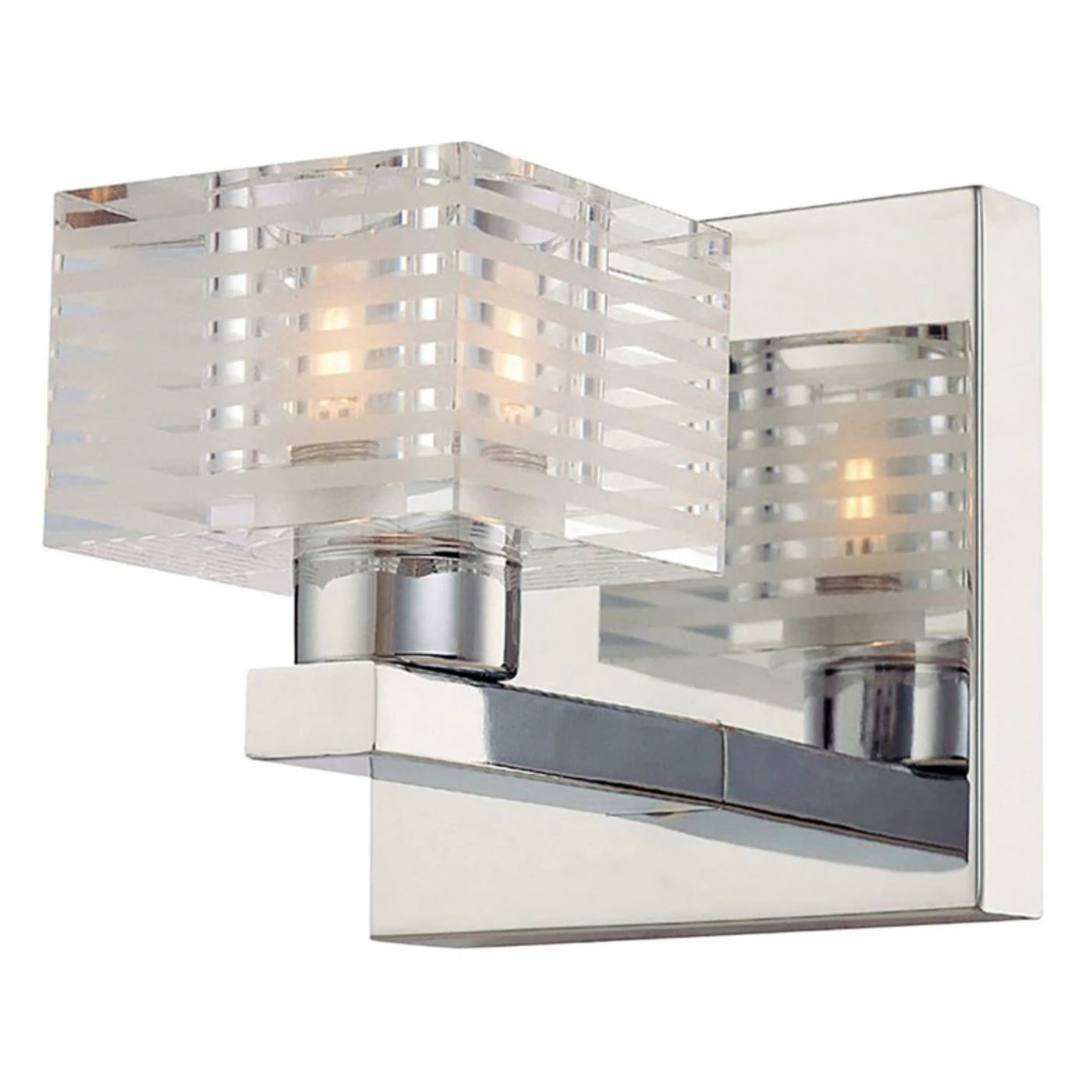 Contemporary style makes a statement with the ELK Lighting Quatra 1 Light Bathroom Vanity Light. The metal housing features a shiny chrome finish, beautifully complementing the clear and frosted glass shade. This vanity light requires one 40-watt bulb (not included).