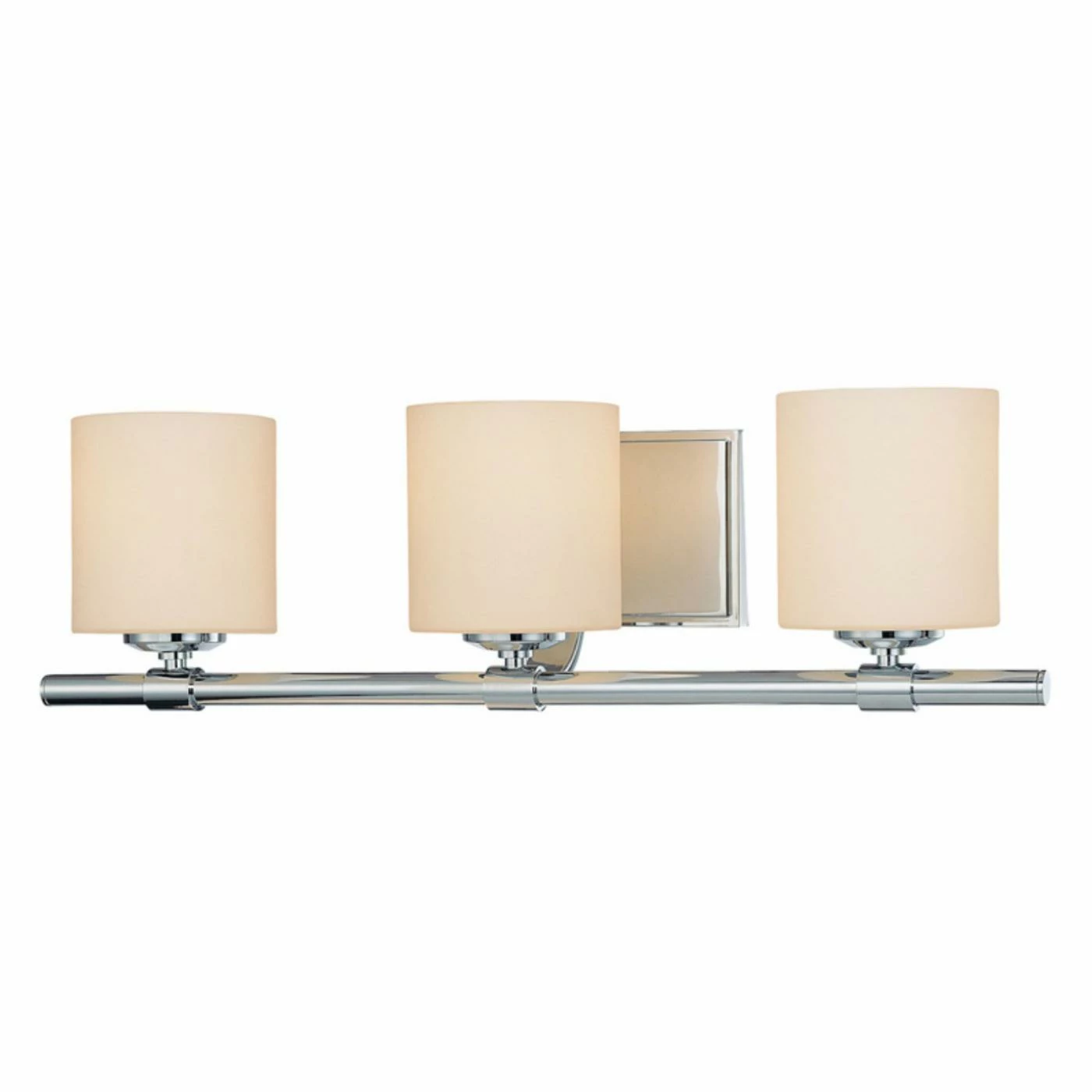 Clean lines, chic style, and ample light make the ELK Lighting Slide 3 Light Bathroom Vanity Light the perfect way to finish your bathroom. The metal housing features a chrome finish, beautifully complementing the white glass shades. This vanity light requires three 100-watt bulbs (not included).