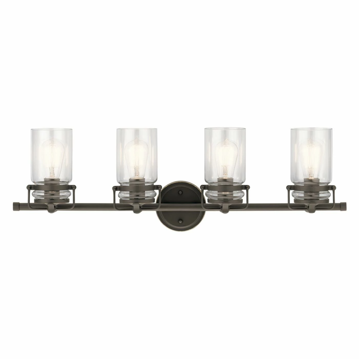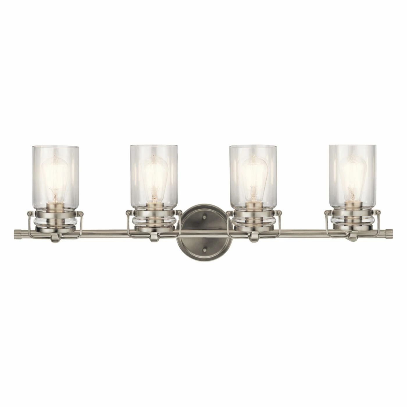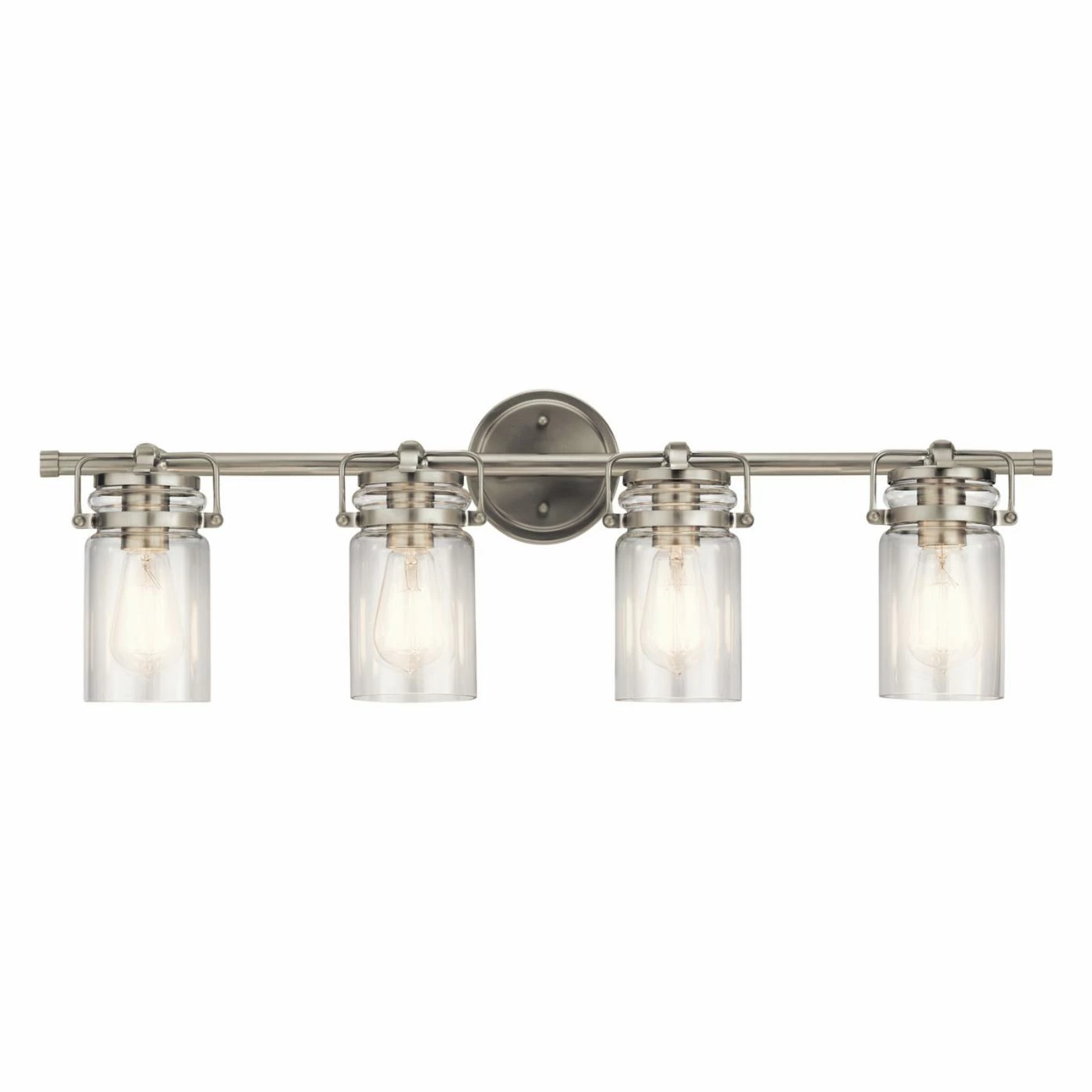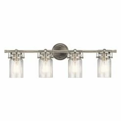 Express your love for industrial design by decorating your bathroom with the Kichler Brinley 45690 Bathroom Vanity Light. This sleek vanity light features metal framework housing chic glass shades. Check out all the available finish options to make this fixture your own.