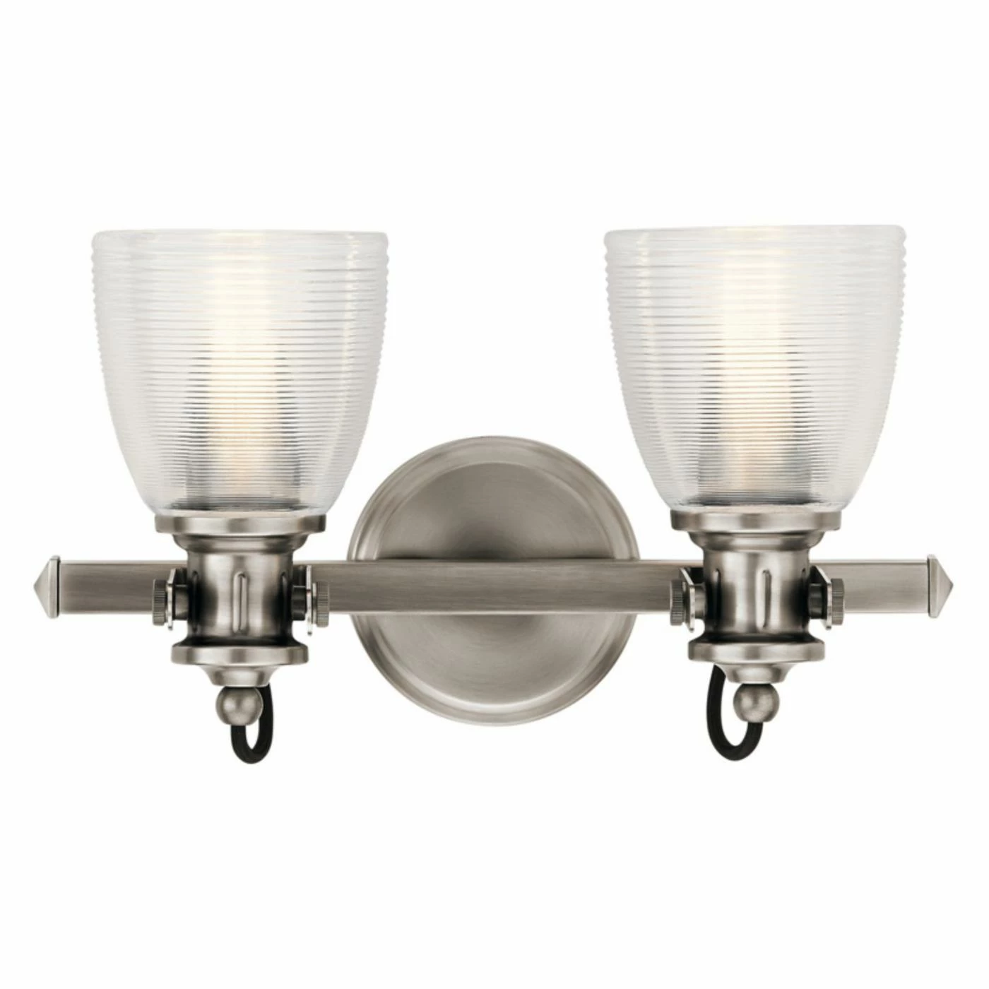 Show off your love for industrial style by illuminating your bathroom with the Kichler Flagship 45872 Bathroom Vanity Light. This stylish vanity light offers a pewter finish and striped glass shades.
