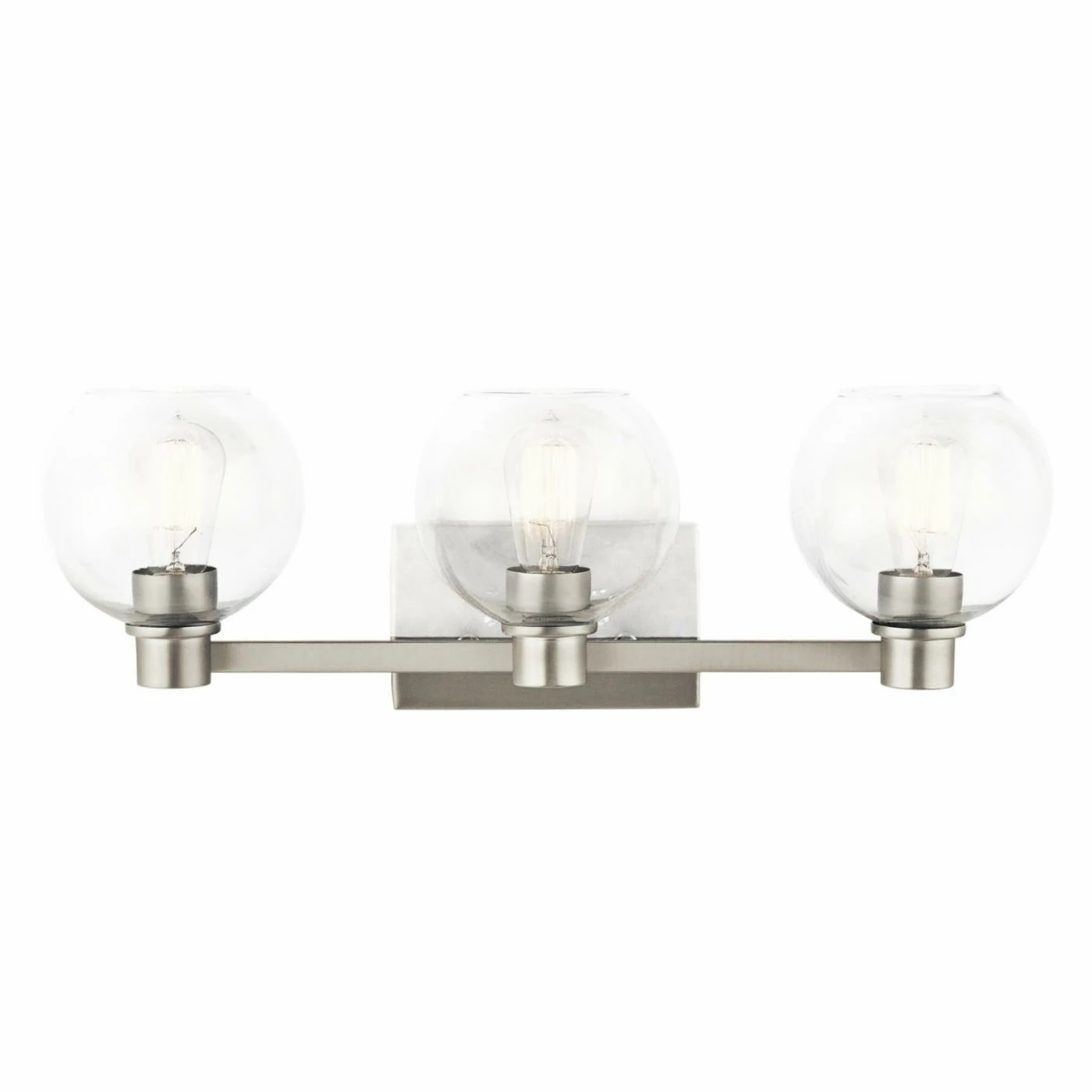 Make the Kichler Harmony 45894 Bathroom Vanity Light a bright addition to any bathroom in your home. This long, three-light fixture offers a metal base with domed clear glass shades.