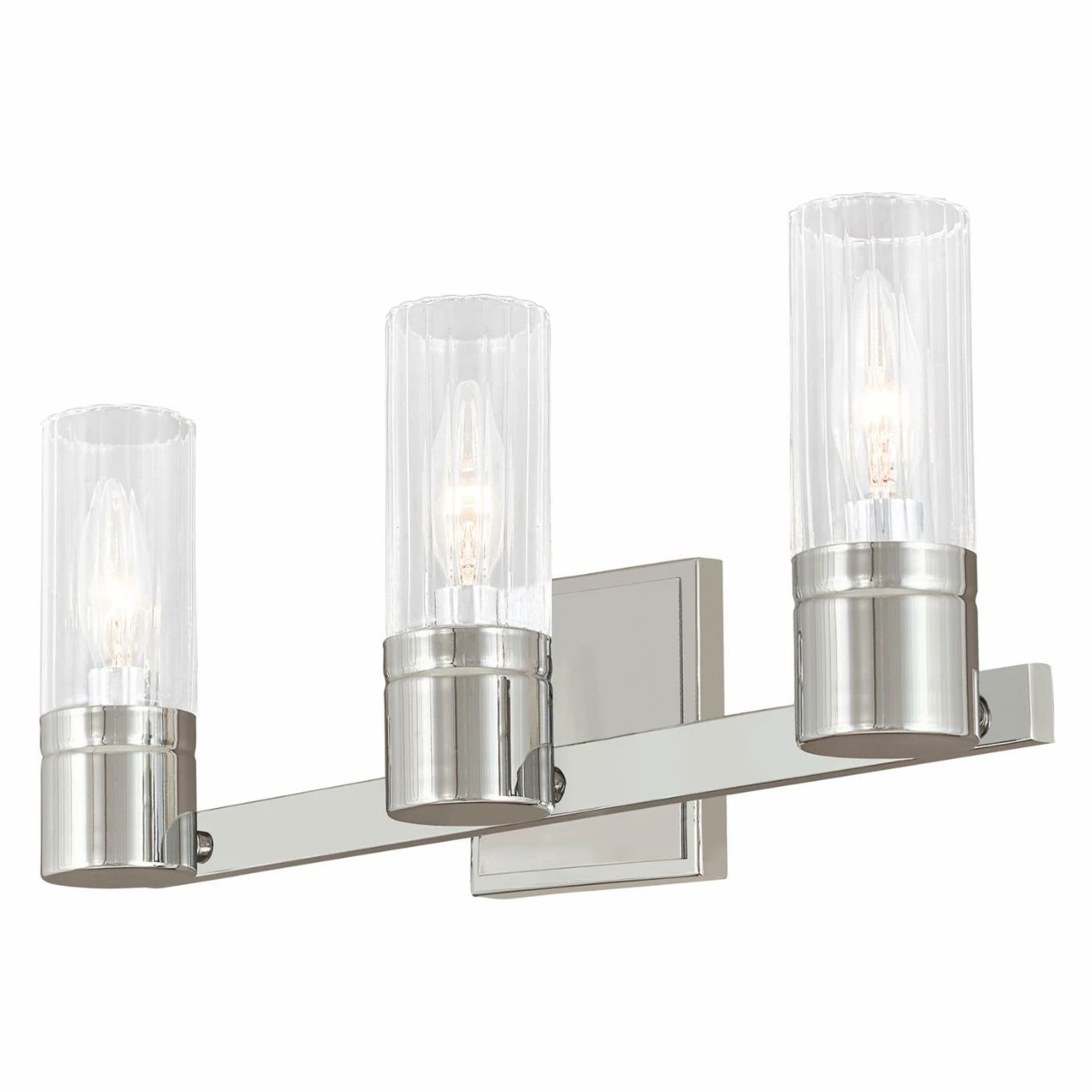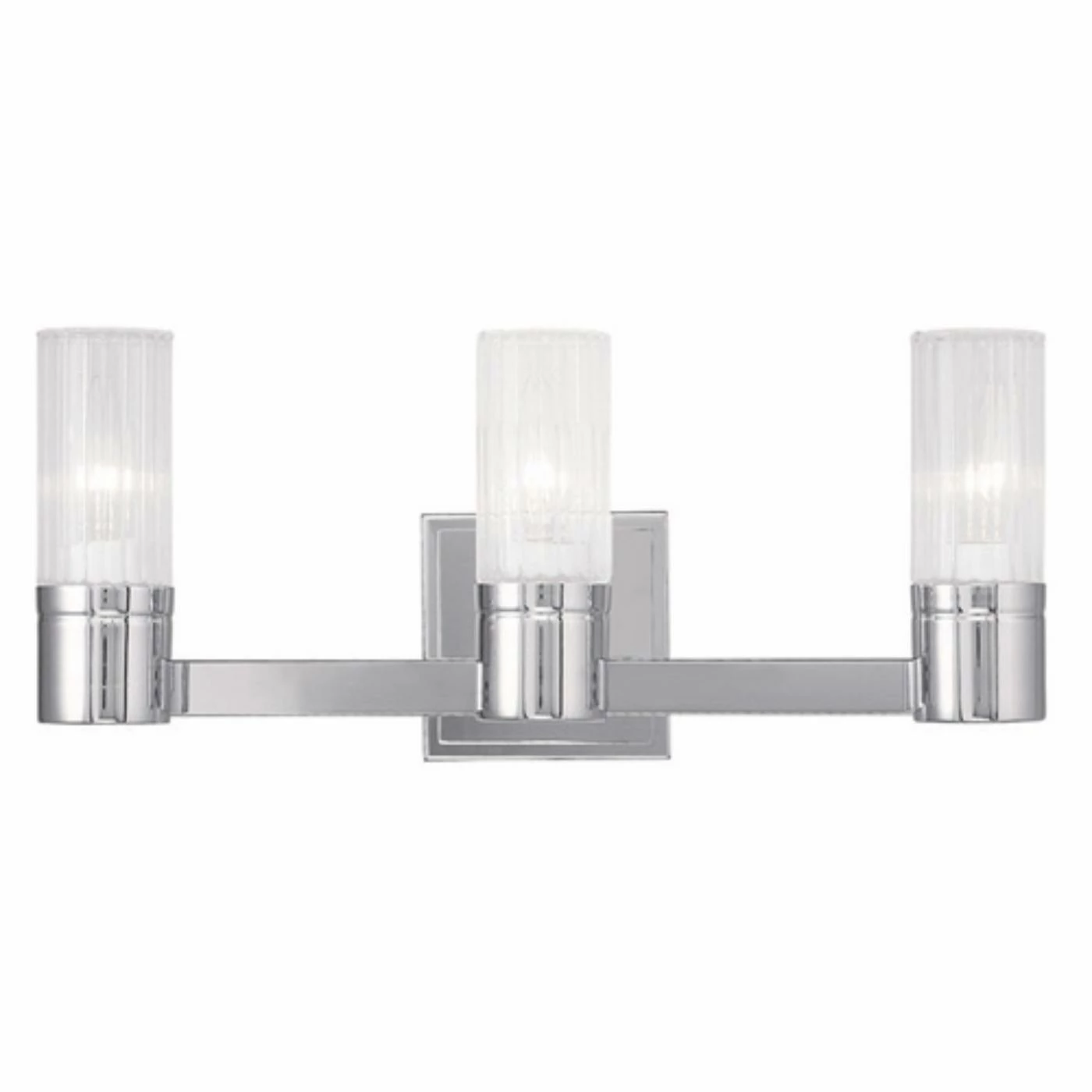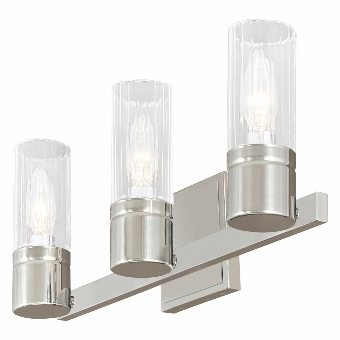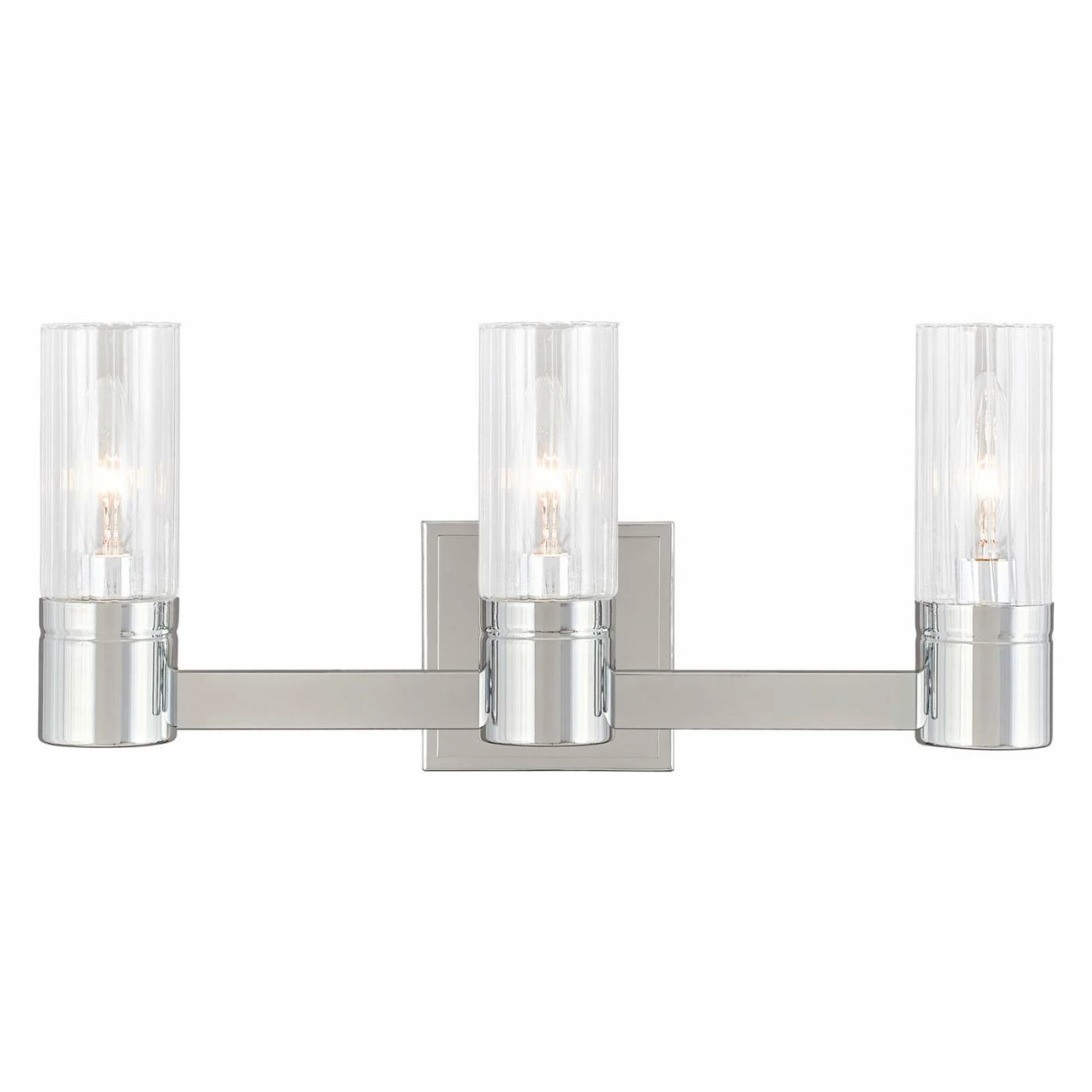 Brilliant illumination and a cylindrical shape combine to create the modern Livex Lighting Midtown 50683 3 Light Bathroom Vanity Light. Requires three 60-watt candelabra base bulbs (not included).