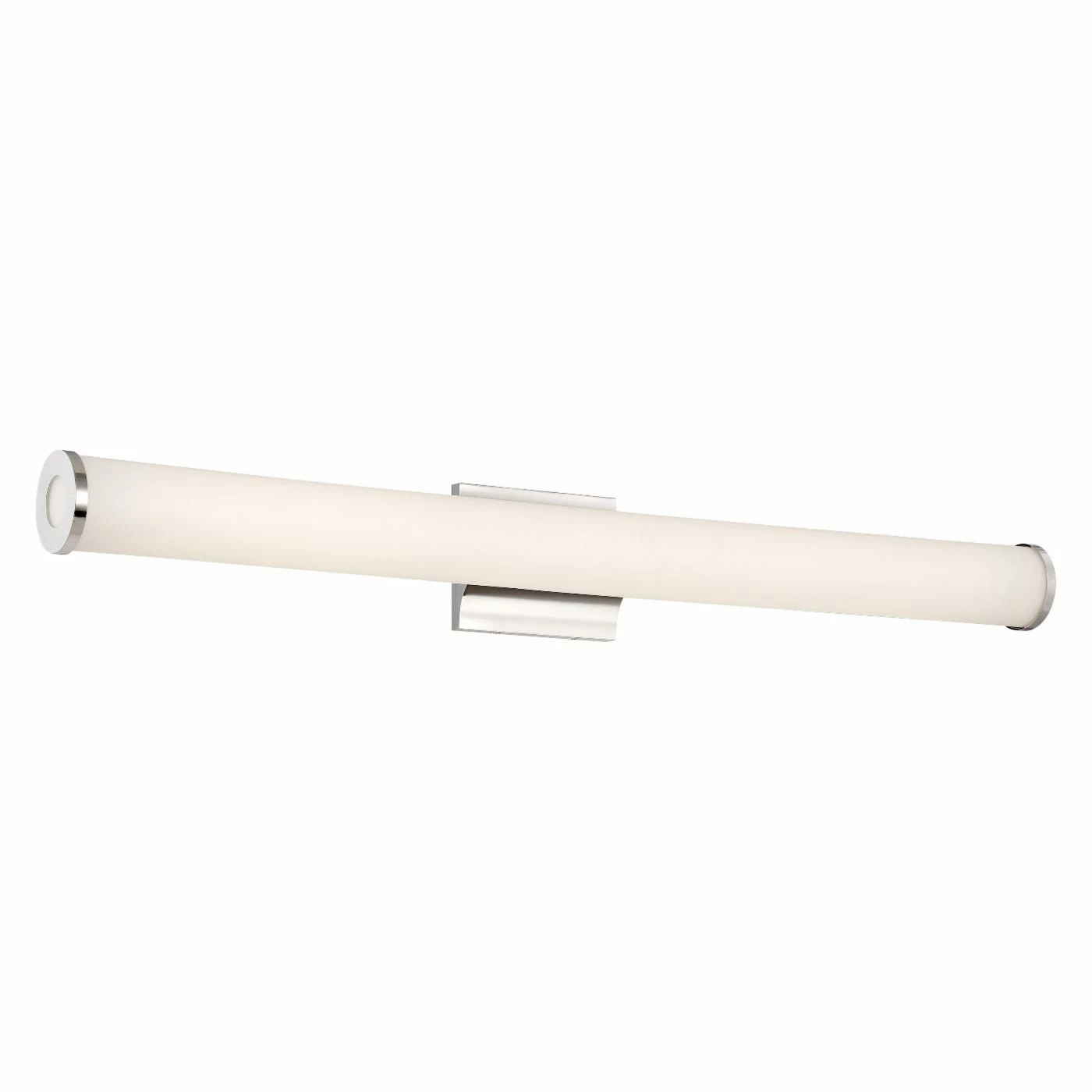 Give your bathroom area a contemporary upgrade with the Nuvo Saber 37 in. Bathroom Vanity Light. This attractive vanity light showcases a sleek, cylindrical design with a frosted white shade. The sleek stainless steel end pieces mirror the matching mounting base.