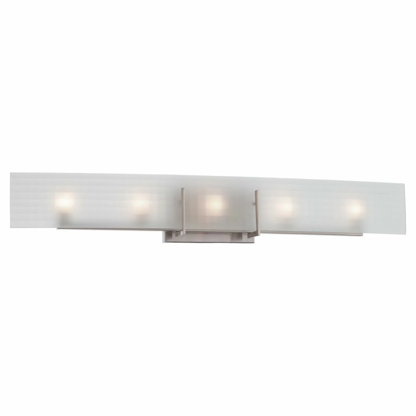 Illuminate your bathroom in a modern and eye-catching way with the Nuvo Yogi 60/5188 Bathroom Vanity Light. This linear vanity light supports five halogen bulbs housed behind the frosted glass panel for a soft effect. Minimal metal accents complete the modern style.