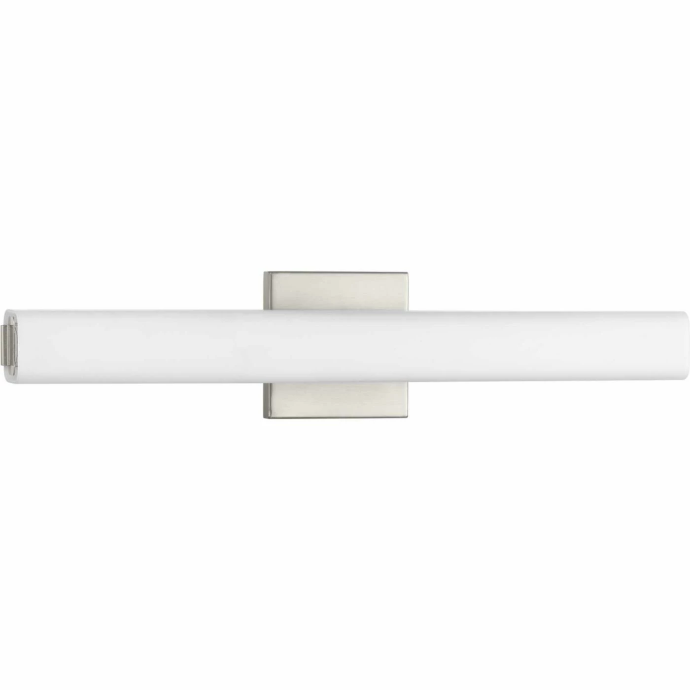 Update your bathroom décor into the modern century with the Progress Lighting Beam 1 Light Bathroom Vanity Light. This simple light has a wide bar shade made from gorgeous etched opal glass that diffuses the light brightly and cleanly. A steel block mounting plate supports the design. Choose among the available finish options. A 35W LED bulb is included.