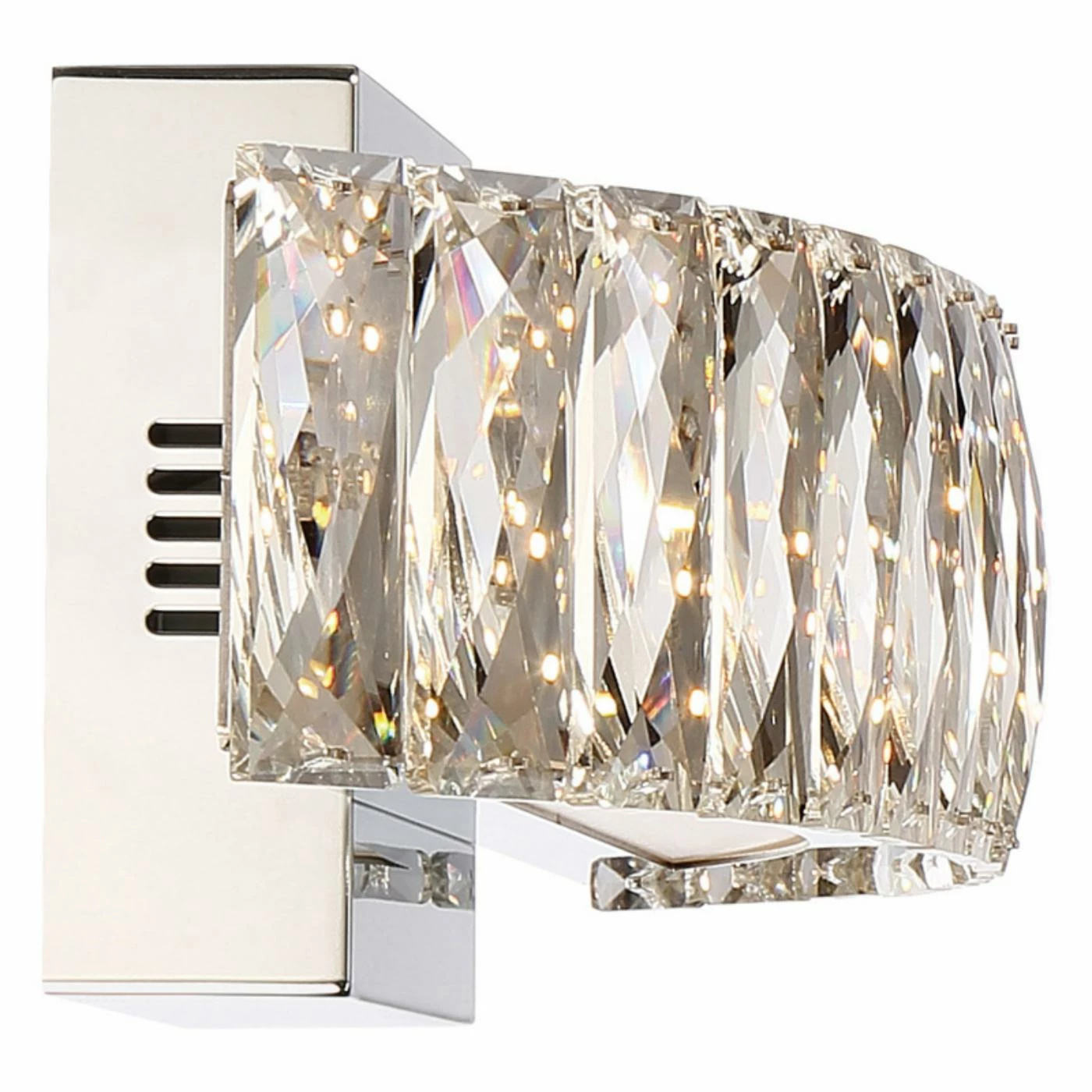 The Quoizel Gala PCGA8519C Vanity Light brings bling and shimmer to your bathroom with gorgeous faceted crystal glass pieces that help reflect the light. This gorgeous vanity light looks impressive in a powder room as well, and the LED lighting gives off a beautiful glow. A polished chrome finished frame adds to the elegant look.