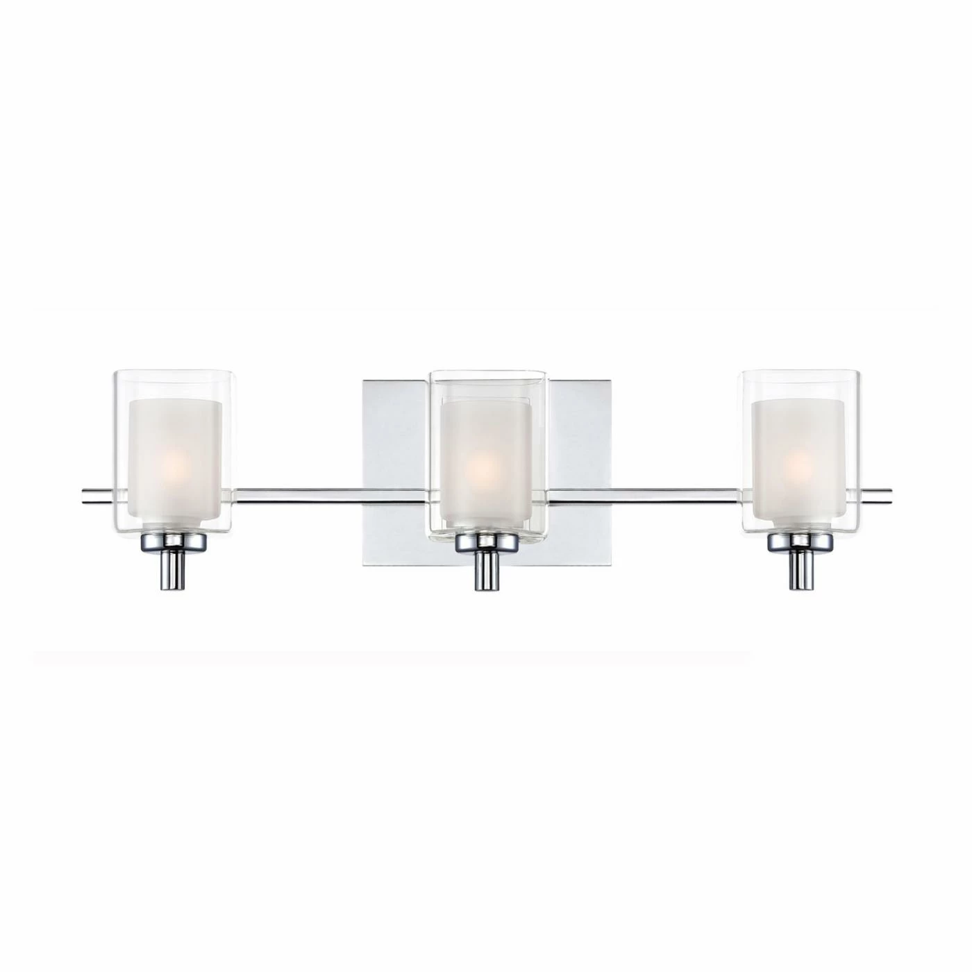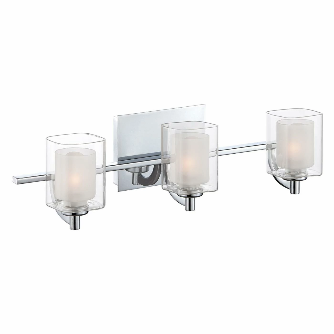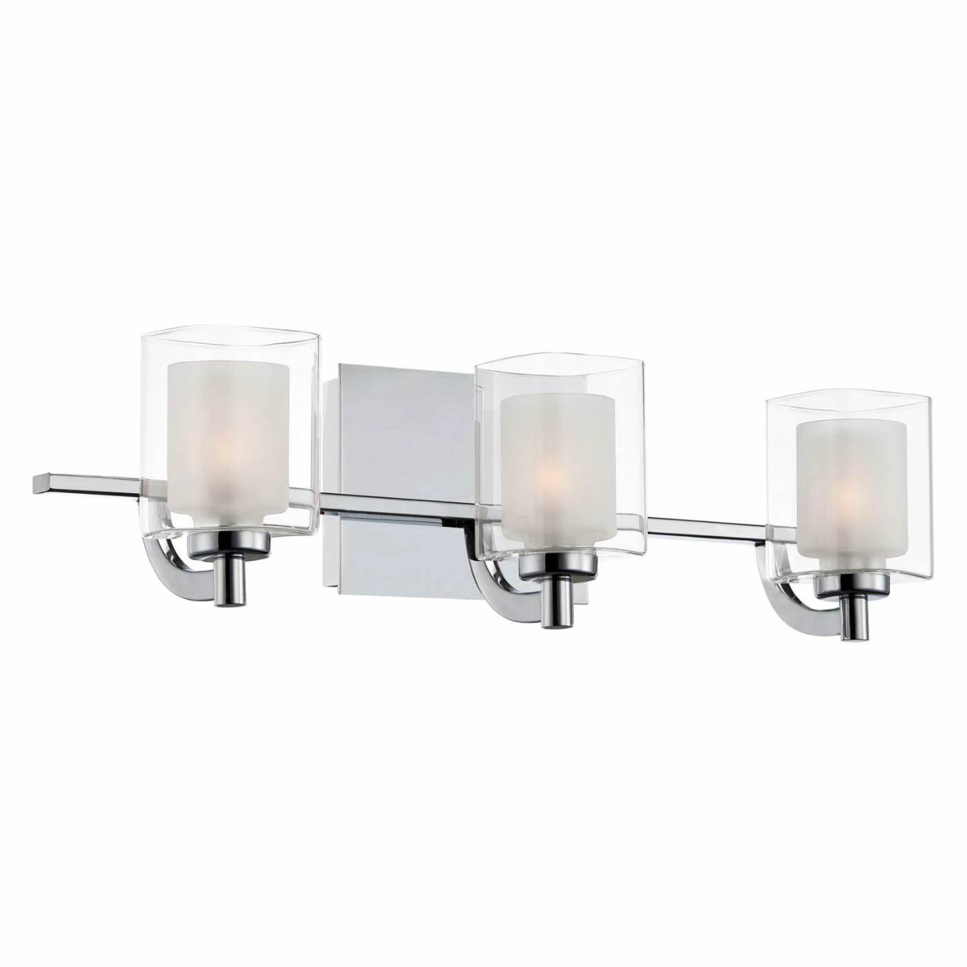 Instantly glam up the bathroom with the Quoizel Kolt KLT8603C 3 Light Bathroom Vanity Light. This polished chrome base supports three cylindrical shades of opal etched glass inside a second clear glass shade that’s square in shape. Three 50-watt G9 halogen bulbs or three 4.5-watt LED bulbs can be used with this fixture.