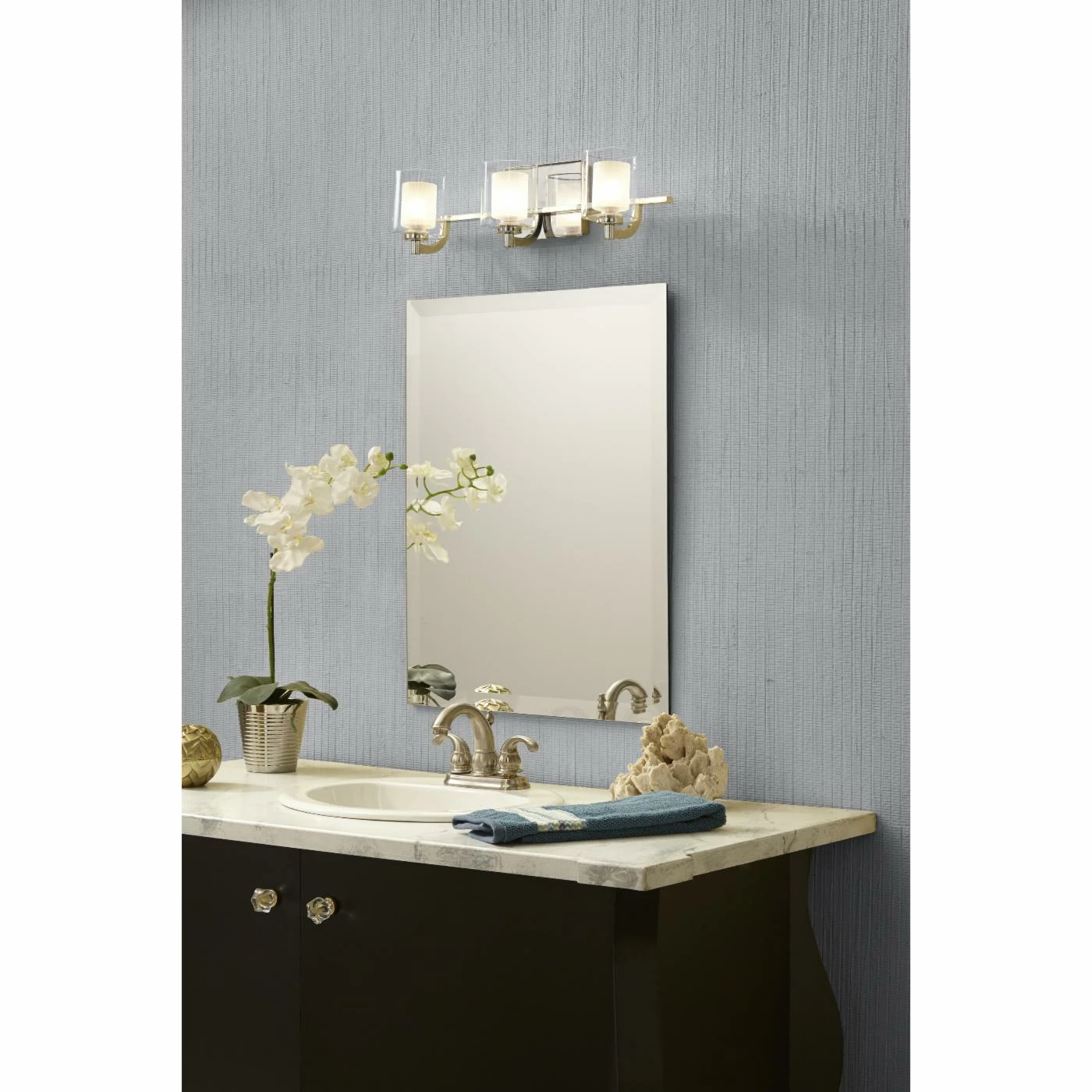 - Requires three 50-watt G9 halogen bulbs or three 4.5-watt LED bulbs (included)