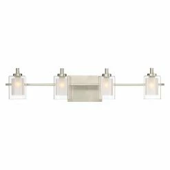 The Quoizel Kolt KLT8604BNLED Vanity Light will add a unique style to your home with its modern design. Two shades are used for each light, and one has been sandblasted to produce a softly diffused glow. The clear outer glass shade gives this intriguing light a bold look that will bring sophistication to your bathroom or powder room.