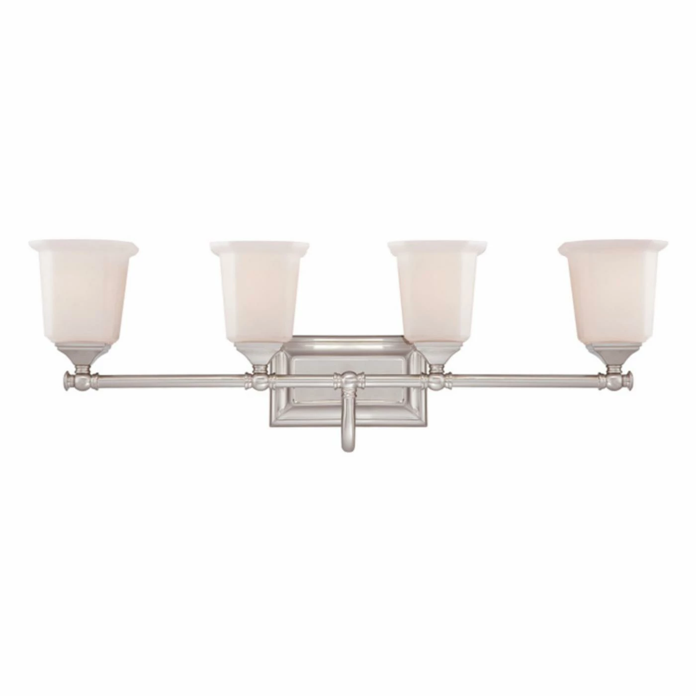 Sophisticated style meets convenient versatility in the Quoizel Nicholas NL8604 Bathroom Vanity Light. This beautiful fixture can be mounted facing up or down, depending on whether you need directed light or a more ambient glow. Its steel frame is available in your choice of colors, and four squared opal-etched glass shades complete the elegant look.