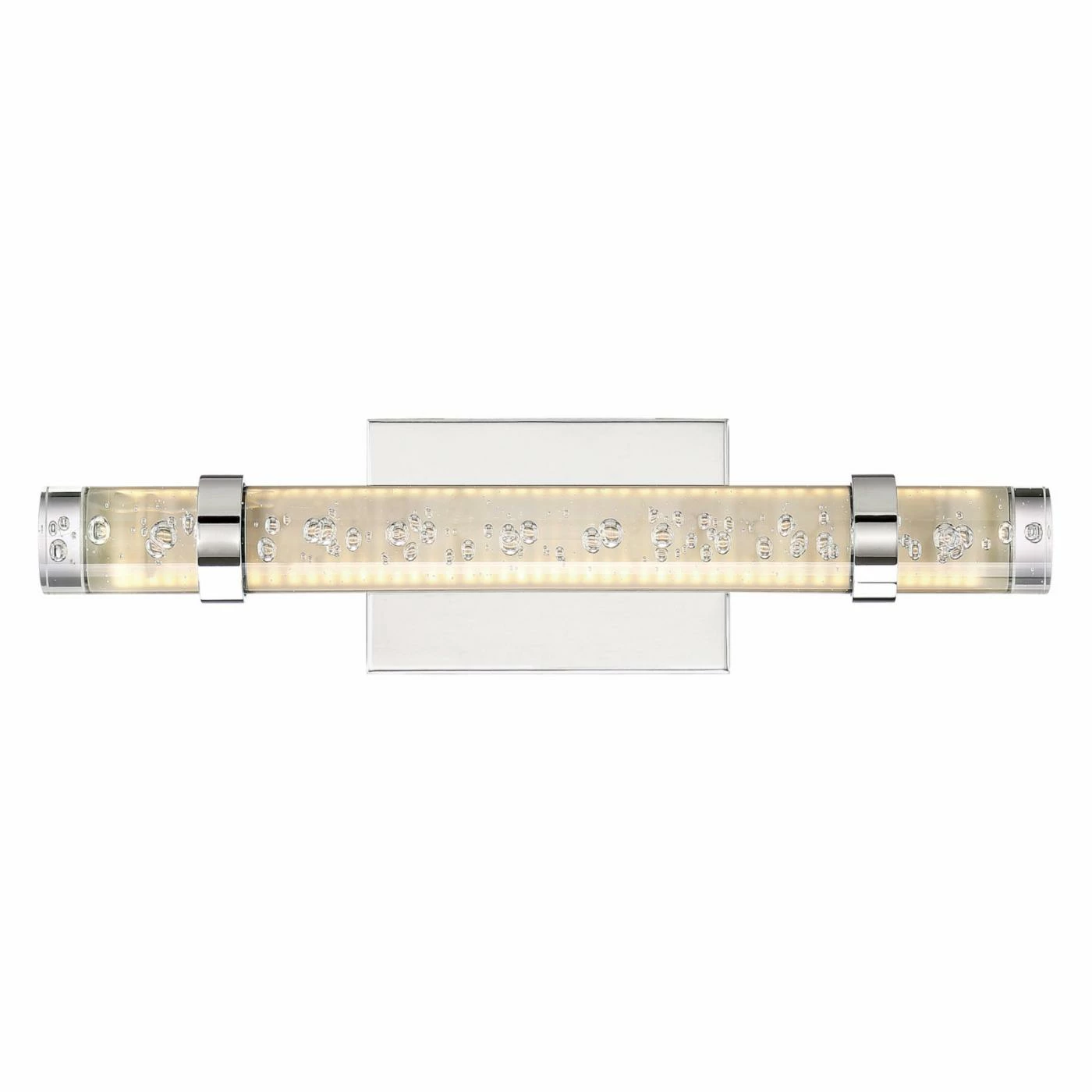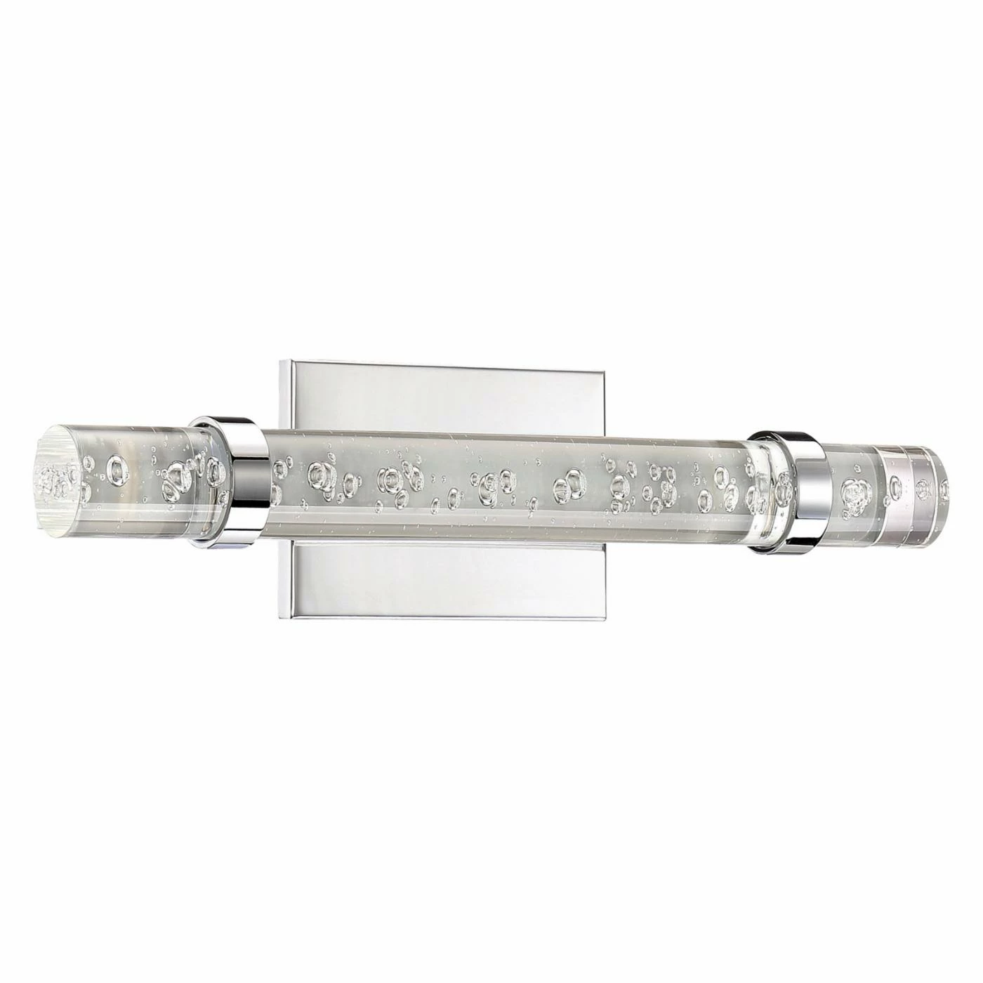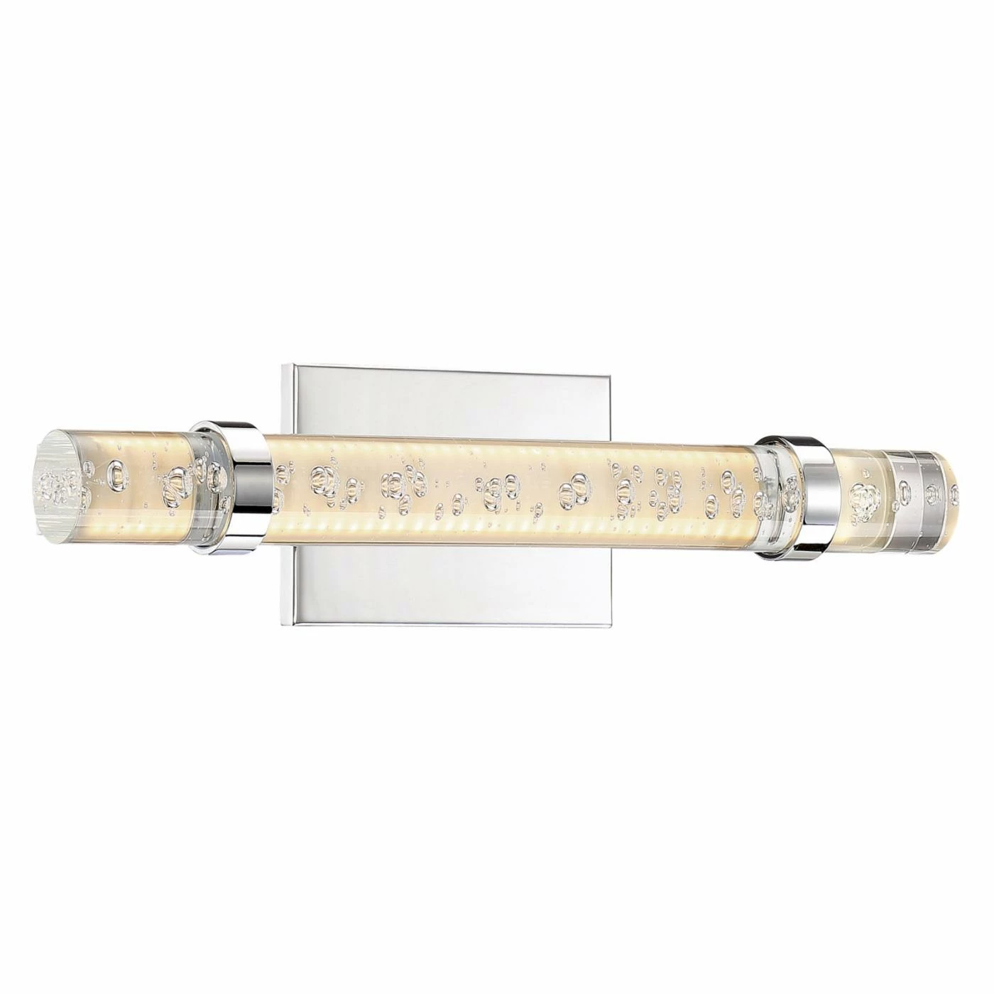 A fun addition to any modern bathroom, the Quoizel Platinum Bracer PCBC8518C 1 Light Bathroom Vanity Light features a clear acrylic, seeded shade with visible bubbles. When you turn on the light, the entire rod glows with energy-efficient, long-lasting LED illumination. Polished Chrome rings secure the light to the chromed rectangular backplate.