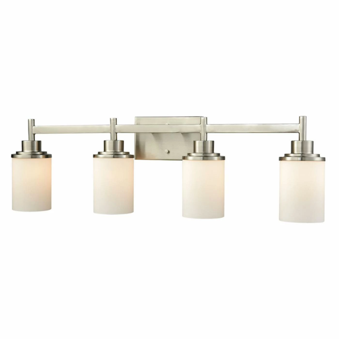 Enjoy soft, inviting illumination in your contemporary bathroom with the help of the Thomas Lighting Belmar CN57541 Vanity Light. The four lamps are diffused by white opal glass shades and can be positioned facing upwards or downwards to meet your lighting requirements.