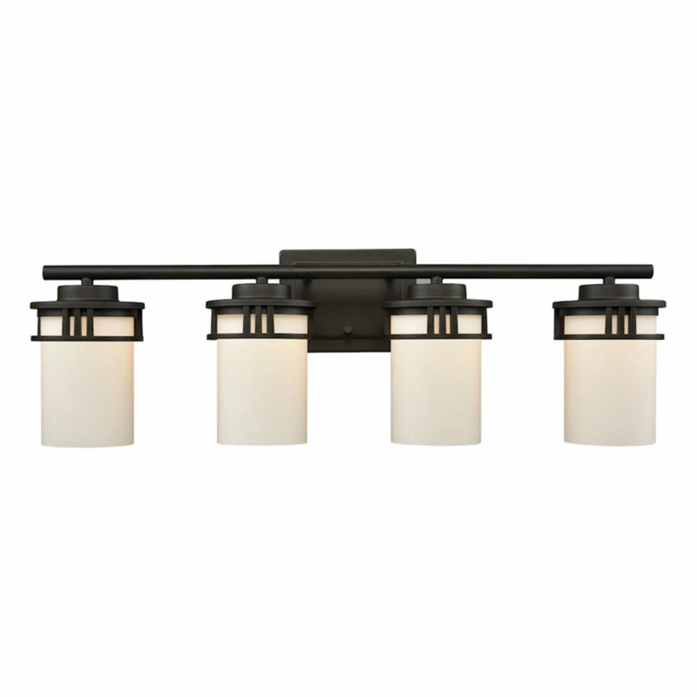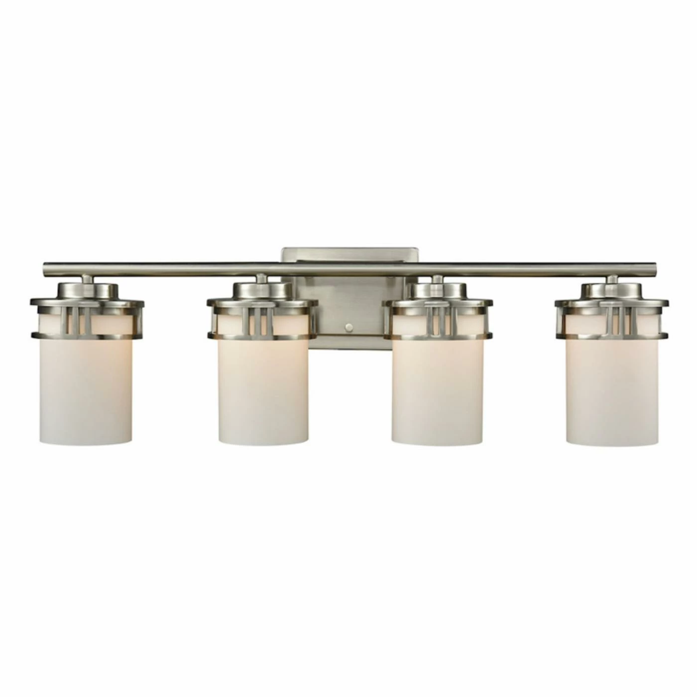 Put a sleek finishing touch on your contemporary bathroom with the Thomas Lighting Ravendale CN57841 Vanity Light. The vanity light can provide ample ambient illumination when its four cylindrical opal glass shades are mounted facing upwards. Point the shades downwards, and the fixture can be used for task lighting at the sink.